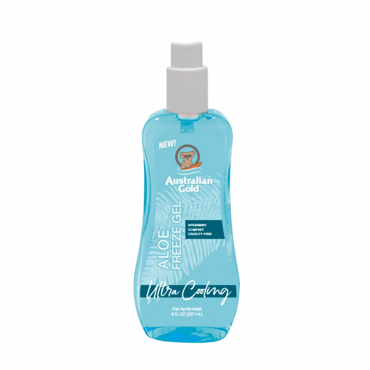 Australian Gold Aloe Freeze Spray Gel 237ml X1 është një gel pas-dielli freskues dhe qetësues në formë spray, i krijuar për të ndihmuar lëkurën që është ekspozuar në diell të freskohet, të qetësohet dhe të rikuperohet pas një dite nën rrezet e diellit. Ky produkt përmban Aloe Vera, i njohur për vetitë e tij hidratues dhe qetësues; ekstrakt mente (spearmint) që jep një ndjesi ftohjeje të menjëhershme; si dhe Vitaminë E, Vitaminë B5 dhe ekstrakte bimore të tjera që ndihmojnë lëkurën të ndjehet e butë, e hidratuar dhe e qetë. Formula është pa parfum, pa alkool, dhe e përshtatshme për lëkurë të ndjeshme.