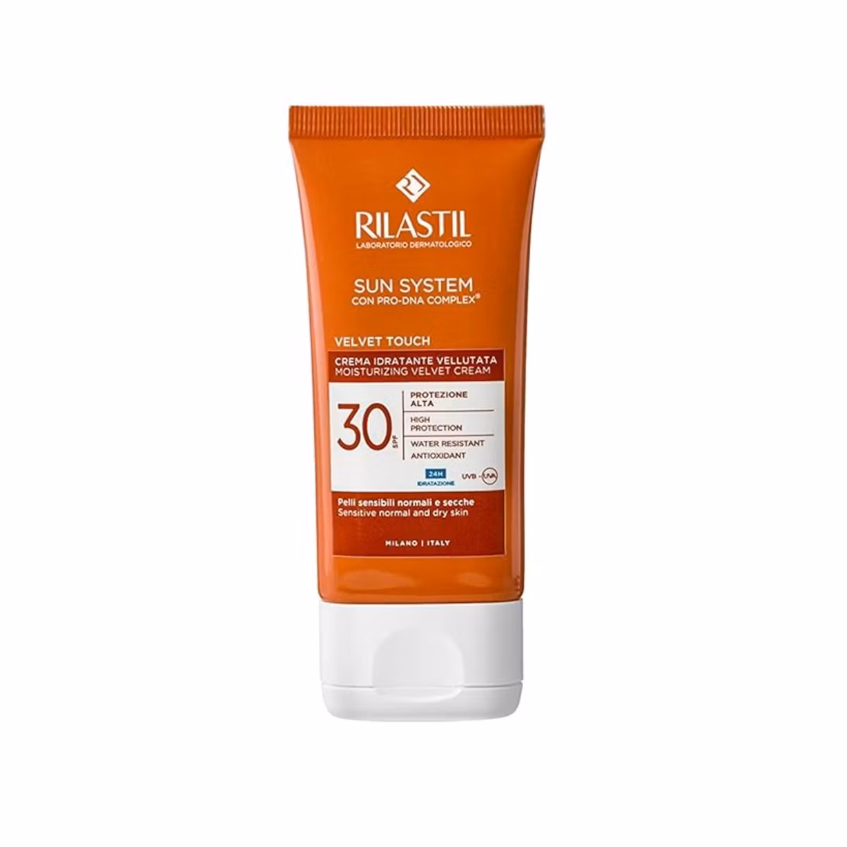 Rilastil Sun System PPT Velvet Cream është një krem me faktor mbrotjës 30 I cili mbron lëkurën nga rrezatimi UVA/UVB. Formula e tij përmban kompleksin Pro-DNA dhe filtra fizikë dhe kimikë të cilët parandalojnë shfaqjen e njollave dhe eritemës në lëkurë. Kremi përthithet shpejt dhe nuk lë njolla të bardha në lëkurë. I përshtatshëm për lëkurë sensitive.
