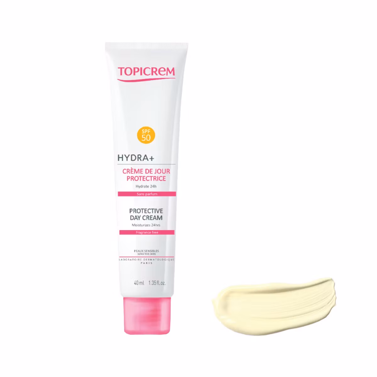 Topicrem Hydra+ Protective Day Cream SPF 50+ është një krem hidratues ditor me mbrojtje shumë të lartë ndaj rrezeve UVA dhe UVB, i cili ndihmon në parandalimin e dëmtimeve nga dielli dhe shenjave të plakjes së parakohshme. Ka një teksturë të lehtë dhe të shpejtë në përthithje, duke e lënë lëkurën të butë dhe të hidratuar pa ndjesi të yndyrshme apo shenja të bardha. I përshtatshëm për përdorim të përditshëm edhe në lëkurë të ndjeshme, ndihmon në ruajtjen e hidratimit gjatë gjithë ditës dhe jep një ndjesi komode dhe të freskët në lëkurë.