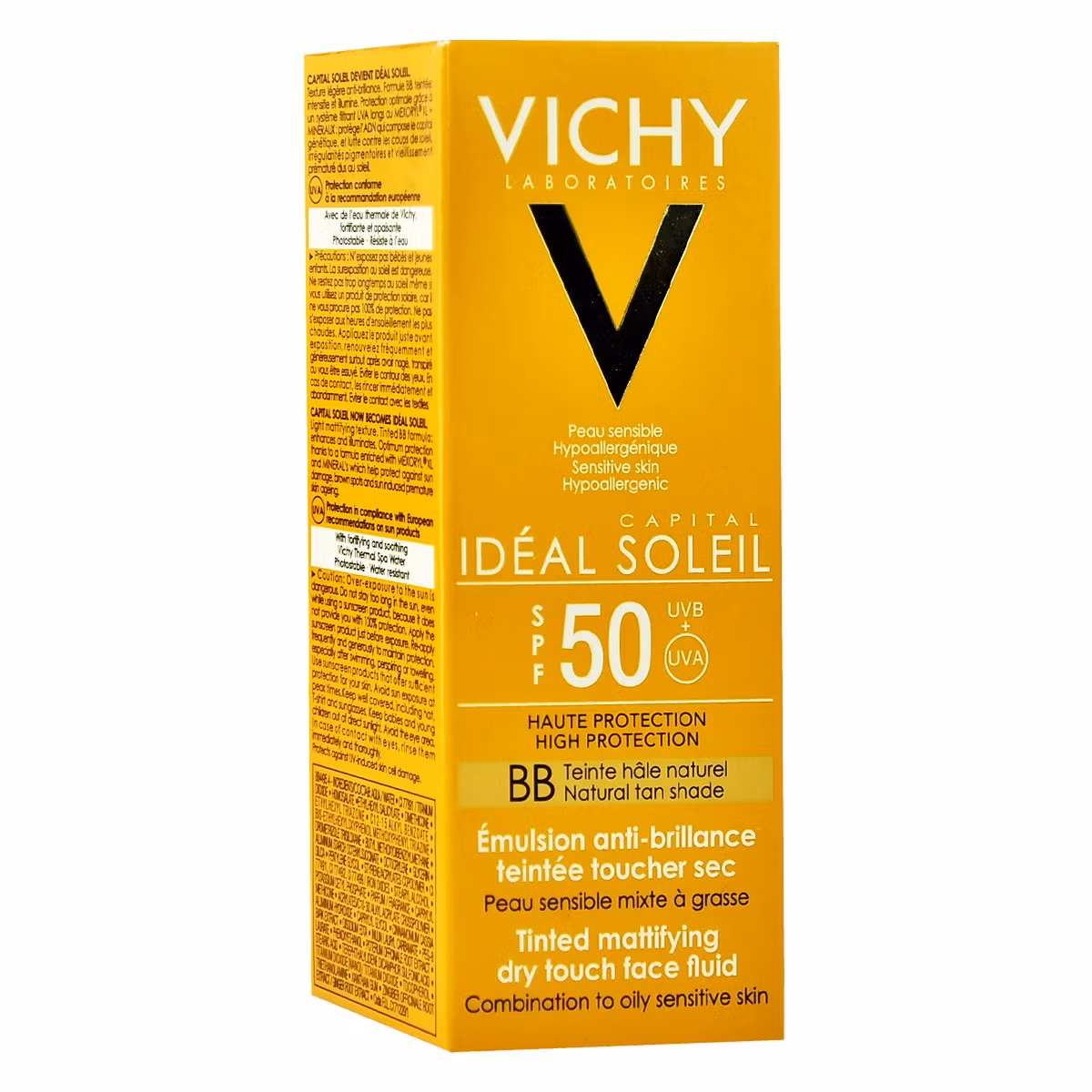 Vichy Matificant BB Tinted Face Fluid SPF 50 është ideal për një mbrojtje të lartë nga dielli. Falë teksurës të tij të lehtë dhe mat filtron rrezet UVA dhe UVB dhe mundëson nxirjen perfekte. Gjithashtu është e pasur me ujin termal Vichy që siguron veti qetësuese dhe tonifikuese.