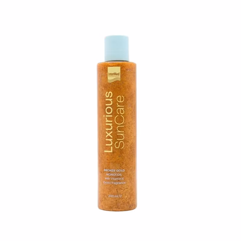 Intermed Luxurious Sun Bronze Monoi Oil është një vaj nxirës luksoz i pasuruar me vaj natyral Monoi, i njohur për vetitë hidratuese dhe aromën ekzotike. Ky vaj ndihmon në arritjen e një nxirjeje të artë dhe të njëtrajtshme, ndërkohë që lë lëkurën të butë, të ushqyer dhe me një aromë tropikale që zgjat. Me teksturë të lehtë dhe që përthithet menjëherë, është ideal për përdorim në plazh ose pishinë.