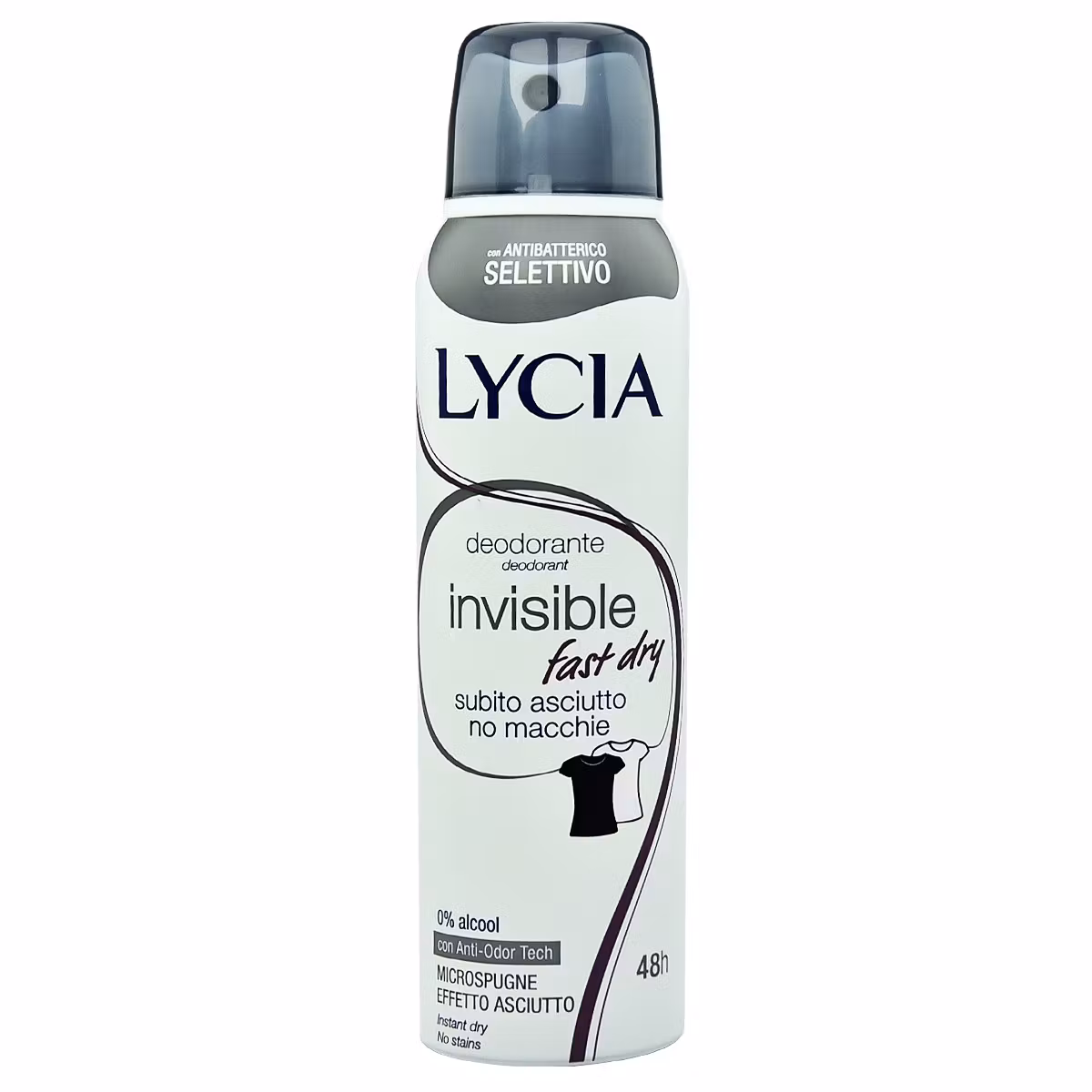Lycia Invisible Fast Dry është një deodorant në një formë spraj që parandalon aromat e pakëndshme dhe stabilizon djersitjen. Formula e saj antibakteriale lufton bakteret e përgjegjshme për aromat e pakëndshme duke ruajtur florën natyrale të lëkurës. Deodoranti nuk lë shenja ose njolla të verdha në rrobat e bardha dhe të zeza. Gjithashtu garanton mbrojtje për 48 orë.