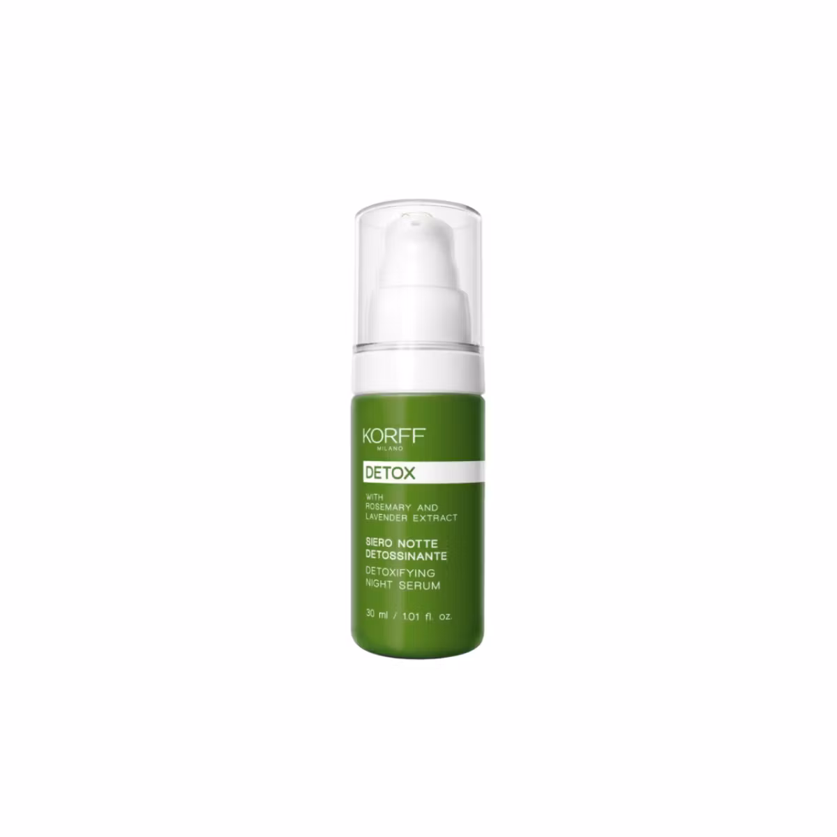 Korff Detoxifying Night Serum është një serum me një konsistence krem xhel që përthithet shumë lehtë nga lëkura. Ky serum është studiuar për të vepruar natën atëherë kur rigjenerimi qelizor është më aktiv. Në formulimin e tij ka një miks antioksidantësh që i garantojnë lëkurës një pamje të shëndetshme dhe me shkëlqim.