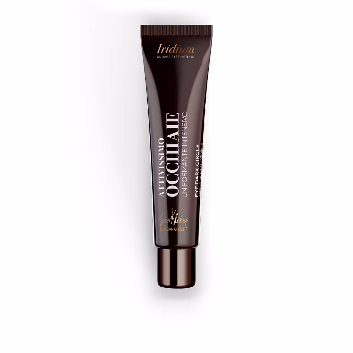 Kremi i syve Iridium Attivissimo Occhiaie është një krem sysh, i cili ka një formulë dinamike, të krijuar posaçërisht për të mundësuar një pamje uniforme të lëkurës përreth syve. Iridium Attivissimo Occhiaie trajton në mënyrë intensive rrathët e errët të syve. Është i përshtatshëm për të trajtuar ngjyrën blu, të kuqerremtë dhe kafe të rrathëve syve. Përmban Chrysin për të neutralizuar ngjyrën blu dhe të kuqerremtë dhe vitaminë C për rrathët e syve ngjyrë kafe.