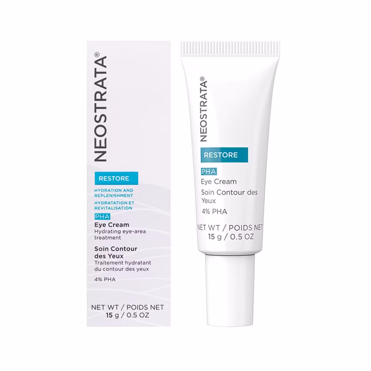 Kremi për sytë NeoStrata Restore ringjallëron zonën përreth syve si dhe pakëson shenjat e plakjes për pamje sa më të freskët dhe rinore. Kremi kombinon teknologjinë kundër plakjes Polyhydroxy Acid (PHA) e njohur për ruajtjen e hidratimit të shtresës së jashtme të lëkurës me vajrat organikë me veprim ushqyes si dhe Acid Hyaluronic për të hidratuar në mënyrë intensive zonën delikate të syve. Ekstraktet qetësuese të çajit jeshil dhe avokados forcojnë barrierën e lëkurës, ndërsa aminoacidet thelbësore nxisin rigjenerimin qelizor duke ndihmuar kështu në reduktimin e rrudhave të para. Kremi ka një teksturë të lehtë dhe përthithet në mënyrë të njëtrajtshme.