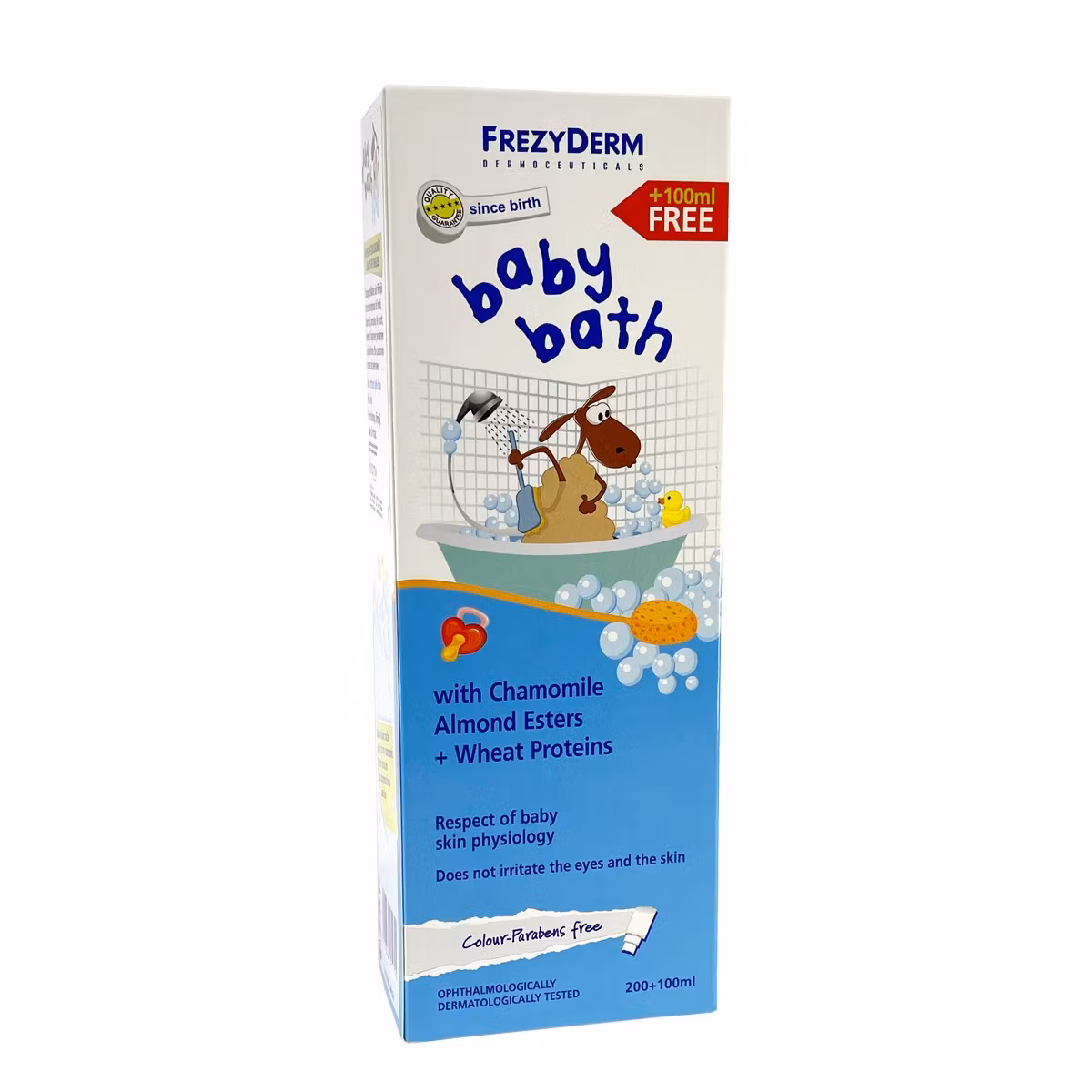 FrezyDerm Baby bath është një larës me ekstrakte kamomili dhe estere bajamesh i përshtatshëm për lëkurën delikate të foshnjës, fëmijëve dhe të rriturve. Pastron lëkurën pa e tharë dhe mbron florën normale të lëkurës, ka veti zbutëse dhe hidratuese. Ky pastrues mund të përdoret çdo ditë dhe nuk irriton sytë dhe lëkurën.