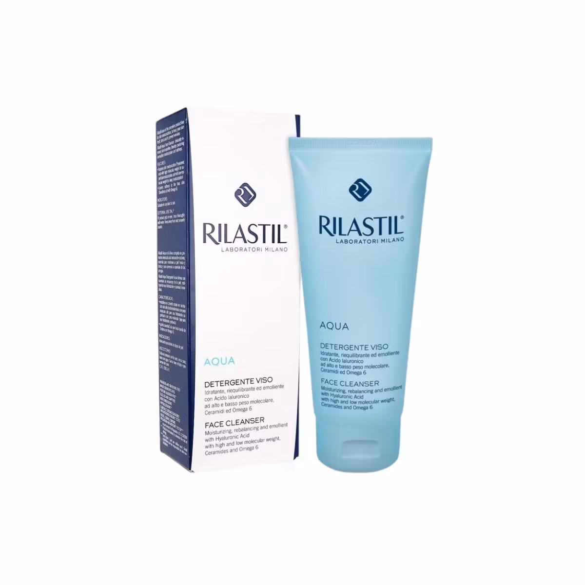 Larësi i fytyrës Rilastil Aqua është një produkt dermokozmetik në formë xheli me acid hialuronik, Ceramide dhe Omega-6 i përshtatshëm për të gjitha llojet e lëkurës. Përdoret për higjienën e përditshme të fytyrës, ka efekt hidratues dhe e bën lëkurën të butë. Larësi nuk bllokon poret dhe nuk shkakton reaksione alergjike.