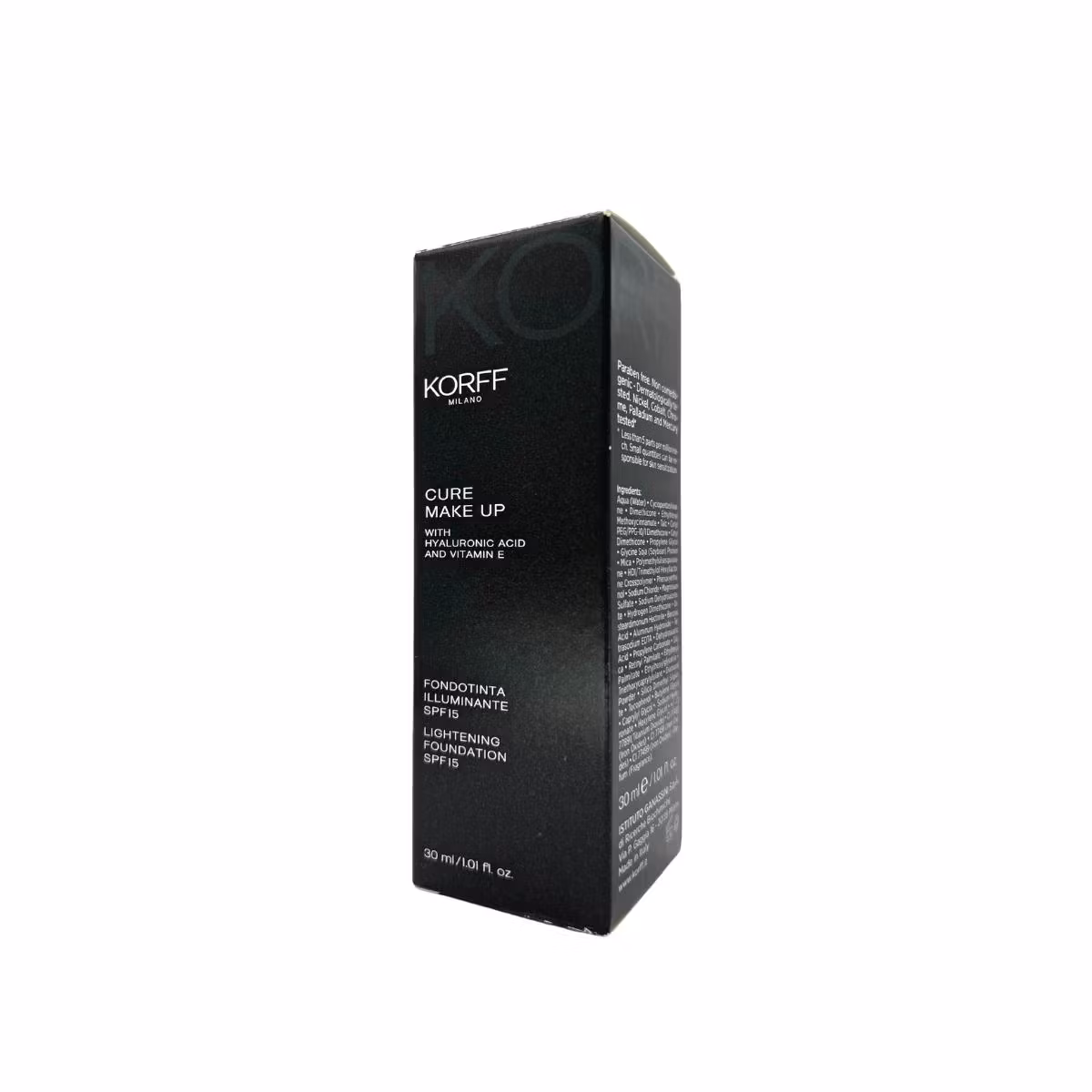 Korff Cure Make Up Fluid Foundation Lifting Effect është një fondatinë e lëngshme, e cila i jep shkëlqim fytyrës, duke e mbajtur atë të hidratuar për 24 orë dhe duke reduktuar rrudhat. Minimizon papërsosmëritë duke siguruar mbulim të plotë dhe ofton një efekt lifting të menjëhershëm. Formulë e pasuruar me Acid Hialuronik dhe Vitaminë E. Mbush mikro rrudhat dhe relakson vijat e mimikës. E testuar klinikisht dhe dermatologjikisht.