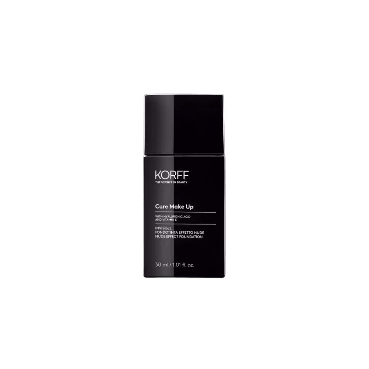 Korff Cure Make-Up Invisible Nude është një fondatinë e lehtë që ofron një mbulim mesatar rrezatues. Tekstura e tij e mëndafshtë shkrihet në mënyrë të barabartë në lëkurë pa shtuar peshë dhe duke krijuar një rezultat ultra natyral. Krijon një çehre të njëtrajtshme dhe të ndritshme. Struktura e tij e lëngshme minimizon pamjen e papërsosmërive. Fokusohet gjithashtu në kujdesin për lëkurën përmes një përzierjeje të veçantë përbërësish aktivë. Ofron një efekt lifting duke mbushur mikro linjat dhe duke zbutur rrudhat e shprehura. Acidi Hialuronik dhe Vitamina E rimbush nivelet e hidratimit dhe shkëlqimit në lëkurë. Mbron lëkurën kundër rrezeve të dëmshme të diellit. Mban lëkurën tuaj të hidratuar deri në 24 orë.