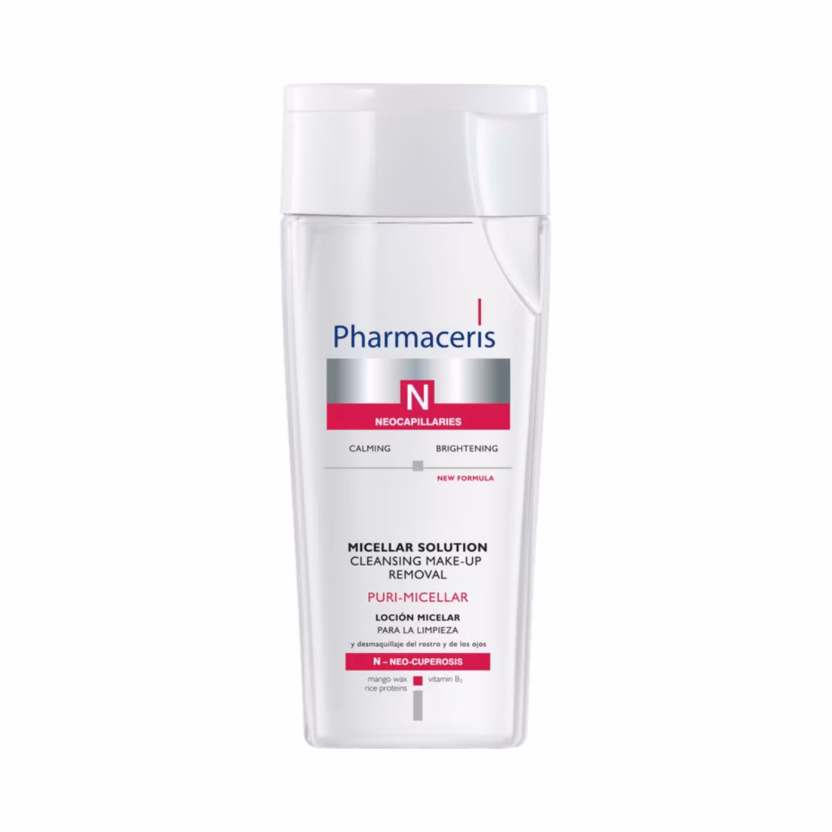 Pharmaceris Micellar Solution Sensitive Skin është ujë micellar I cili rekomandohet për pastrimin e përditshëm të lëkurës me probleme kapilarësh. Falë formulës së saj inovative të bazuar në strukturën micellare solucioni heq në mënyrë efektive make-up dhe papastërtitë duke parandaluar në mënyrë aktive irritimet që shpesh shoqërojnë procesin e pastrimit. I pasur me vitaminë B3 produkti nxit rinovimin e epidermës dhe minimizon skuqjen. Kompleksi i proteinave të orizit dhe dyllit të mangos siguron ushqim dhe hidratim të duhur të lëkurës.