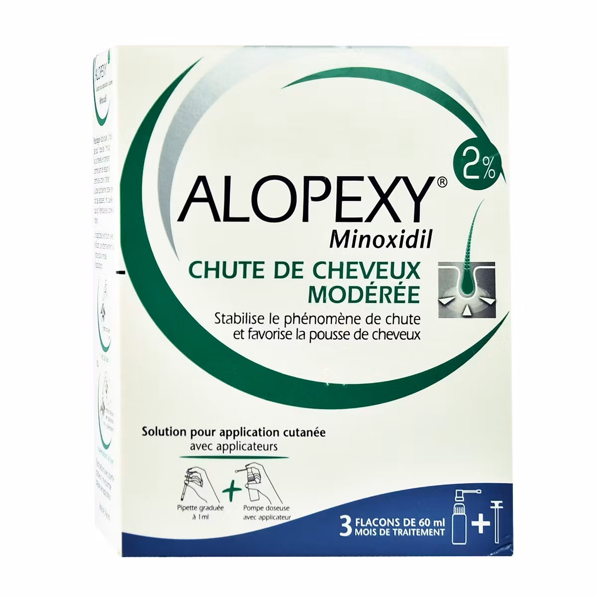 Alopexy 2% është një tretësirë për aplikim në lëkurë që përdoret në rastet e rëniës së flokëve me origjinë hormonale tek të rriturit, meshkuj dhe femrat. Përmban Minoxidil një bar që stimulon rritjen e flokëve dhe ngandalëson rënien e tyre kur aplikohet në skalp. Minoxidil është gjithashtu dhe një bar antihipertensiv por i aplikuar në mënyrë topike nuk ndikon në tension e gjakut. Ky produkt nuk është i përshtatshëm për rënien e papritur të flokëve si pasojë e një sëmundje ose trajtimit me barna.