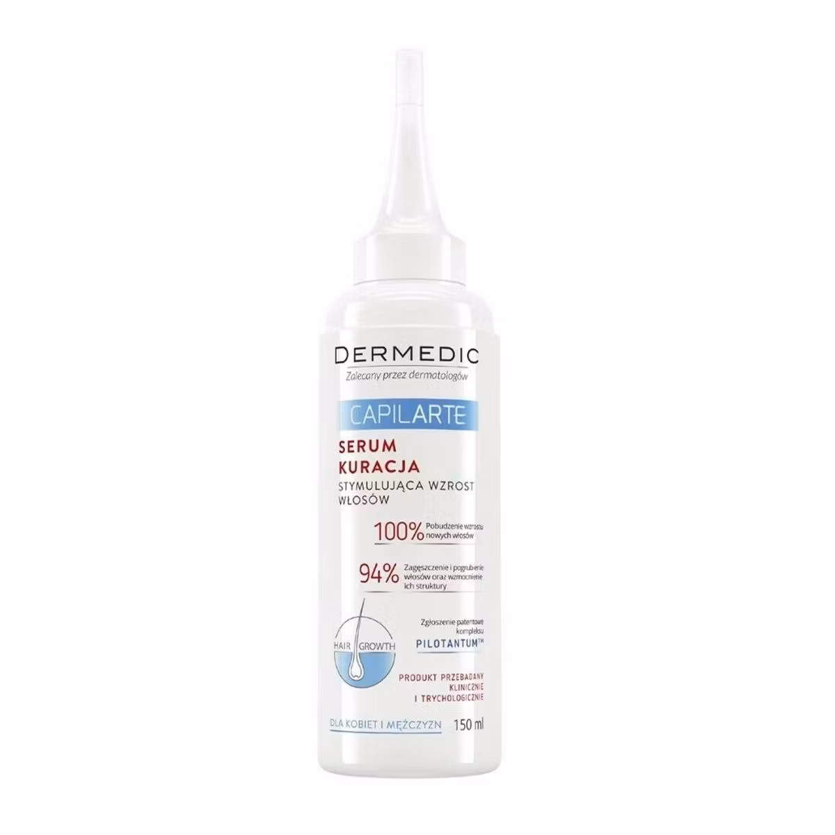 Serum për stimulimin e rritjes së flokëve për burra dhe gra. I rekomanduar për lëkurën e ndjeshme të kokës për njerëzit që vuajnë nga rënia periodike ose kronike e flokëve. Mbron, rigjeneron dhe ushqen intensivisht qelizat e folikulave të flokëve dhe përmirëson vitalitetin e tyre. Stimulon mikroqarkullimin në lëkurën e kokës duke përmirësuar kështu volumin dhe reduktuar dukshëm rënien e flokëve.