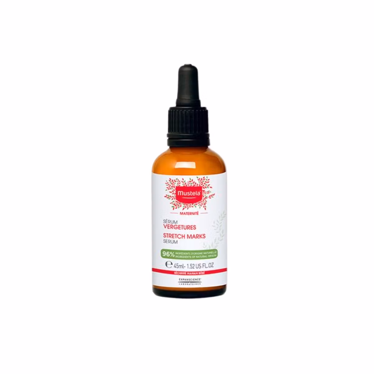 Serumi për strijat Mustela Maternité 3 në 1 është formuluar posaçërisht për të parandaluar shfaqjen e strijave gjatë shtatzënisë. Formula e tij hidraton në mënyrë të thellë, rikthen elasticitetin e lëkurës dhe zbut ndjesinë e shtrëngimit. Përmban një sërë përbërësish natyralë si Vaji i Avokados, i pasur me acide yndyrore esenciale, që ndihmon në rivendosjen dhe ruajtjen e shtresës hidrolipidike të dobësuar gjatë shtatzënisë. Ka të përfshirë në formulë edhe një kompleks përbërësish aktivë natyralë që rrjedhin nga polifenolet të maracujës dhe ekstraktet e bimëve Hamamelis, që përmirëson elasticitetin e lëkurës, duke parandaluar kështu shfaqjen e strijave. Glicerina hidraton dhe ushqen lëkurën.