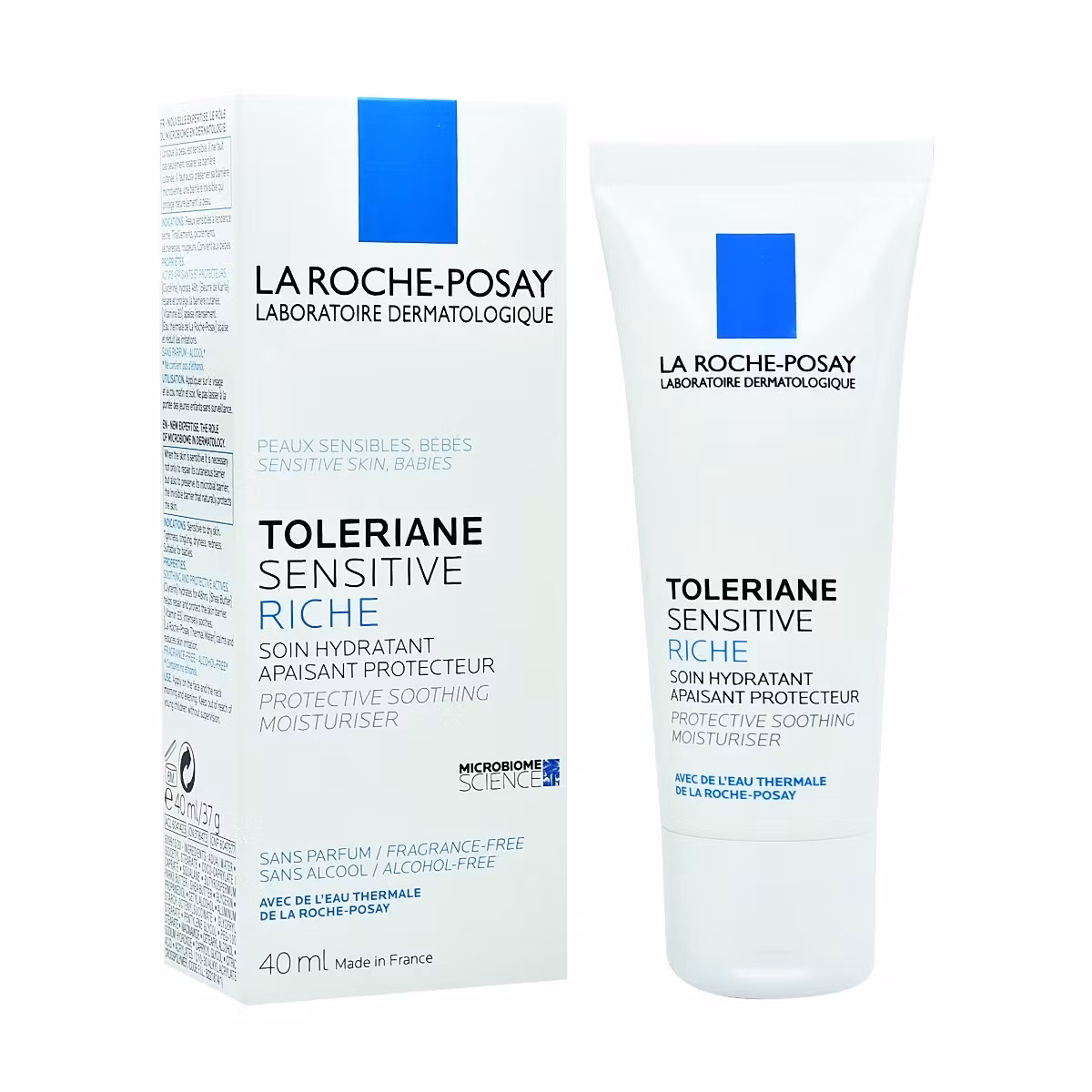 La Roche- Posay Toleriane Sensitive Riche është një krem për lëkurat e thata që përmban Glicerinë, Gjalpë Shea,Vitaminë B3. Hidraton për 48 orë, qetëson lëkurën në mënyrë intensive, redukton irritimet dhe skuqjet e saj. La Roche-Posay Toleriane Sensitive Riche riparon barrierën mbrojtëse dhe atë mikrobiale të lëkurës. Është i përshtashtëm edhe për lëkurat delikate të bebeve.