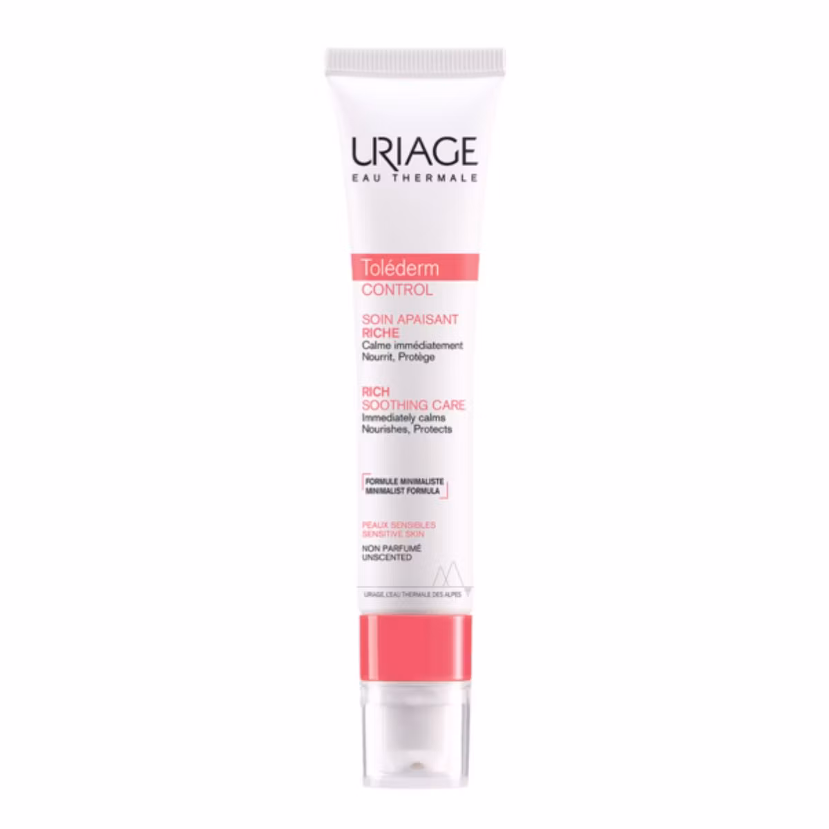 Toléderm Control Soothing Care është një krem i lehtë që zbut, mbron dhe ofron rehati të qëndrueshme për lëkurat e ndjeshme, intolerante dhe alergjike. Falë formulës së tij me 3 përbërës aktivë me origjinë natyrale [Uri termal Uriage + Polyuronidet e Algave + Squalane vegjetale], ky trajtim forcon barrierën e lëkurës dhe rrit tolerancën e saj për të ndihmuar kontrollin e ndjesisë së acarimit dhe të shpimit. Polyuronidet anti-irrituese të Algave të kombinuara me Ujin Termal Uriage, qetësojnë menjëherë në mënyrë të qëndrueshme irritimin. Gjithashtu Glicerina në bashkëveprim me Ujin Termal Uriage hidratojnë thellësisht lëkurën.