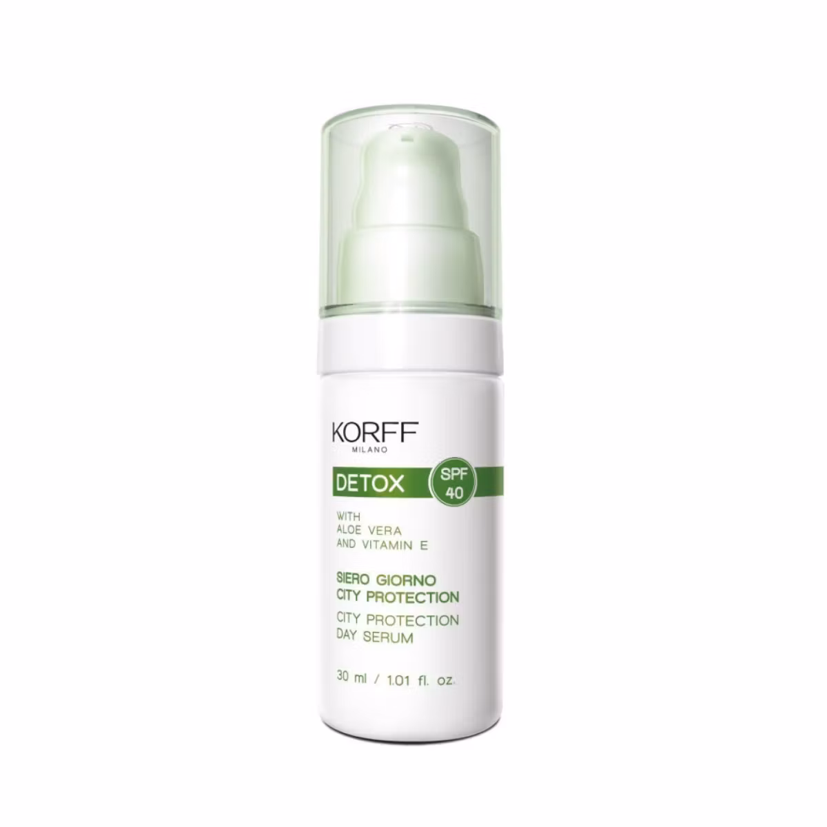 Serum Korff me faktor mbrojtës 40 hidraton në mënyrë intensive lëkurën dhe njëkohësisht e mbron atë nga veprimi i dëmshëm i rrezatimit UVA/UVB. Formula e tij ka në përmbajtje kombinimin e Pantenolit dhe aloe Veres me veprim hidratues dhe vitaminës E me veti antioksiduese që bën të mundur mbrojtjën e lëkurës nga stresi oksidativ. Pas aplikimit lëkura qëndron e butë dhe plot shkëlqim. I përshtatshëm për të gjitha llojet e lëkurës.