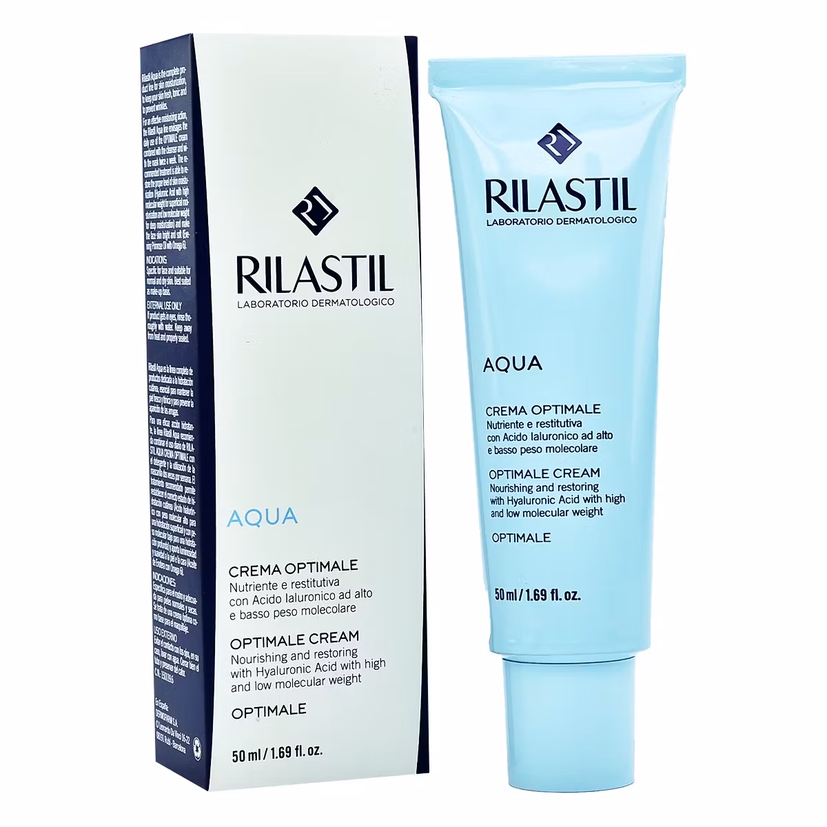 Kremi Rilastil Aqua Optimale është një trajtim i përditshëm që siguron hidratim maksimal në lëkurë. Tekstura kremoze bën të mundur përthithjen e shpejtë të saj vecanërisht për lëkurën normale dhe të thatë. Lëkura qëndron e hidratuar për një kohë të gjatë si dhe mund të përdoret edhe si bazë make-upi.