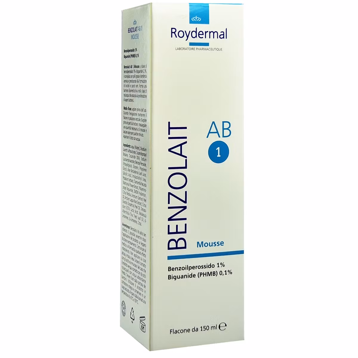 Benzolait AB 1% është një larës në formë shkume për lëkurë të yndyrshme, akneike dhe me tendencë krijimin e pikave të zeza. Përmban peroksid benzoili 1% dhe biguanid 0,1 % të cilët veprojnë duke reduktuar bakteret në lëkurë që shkaktojnë akne. Gjatë shpëlarjes shkuma formon një barrierë mbrojtëse që parandalon përhapjen e baktereve.