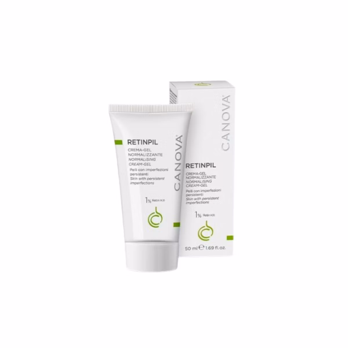 Canova Retinpil është një trajtim intensiv i krijuar posaçërisht për të reduktuar njollat e vazhdueshme në lëkurën e prirur ndaj akneve. Retinoli ndihmon në normalizimin e pigmentimit të lëkurës dhe redukton përgjigjen inflamatore. Redukton formimin e komedoneve dhe pikave të zeza. Niacinamidet në përmbajtje veprojnë si antioksidant. Parandalon formimin e sebumit. Zinku ndihmon në parandalimin e skuqjes së lëkurës. Qetëson dhe hidraton lëkurën.