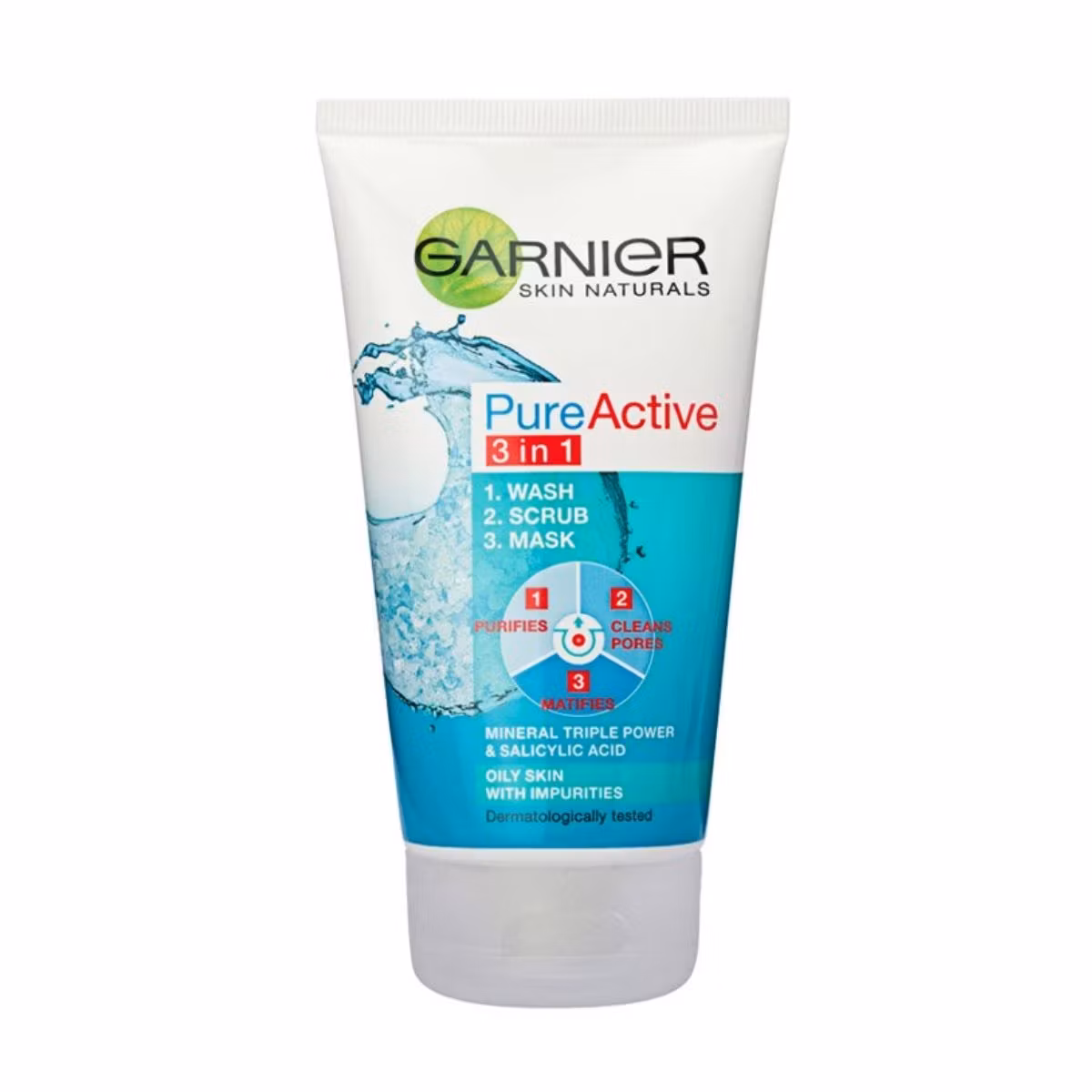 Garnier Pure Active 3in1 parandalon shfaqjen e njollave, minimizon poret e bllokuara dhe redukton shkëlqimin e yndyrës gjatë ditës. PureActive 3 në 1 mund të përdoret si Larës, Skrab dhe Maskë për fytyrën dhe është ideale për lëkurat e yndyrshme dhe me tendencë akneike. Vjen në formatin e përshtatshme për ta marrë me vete në udhëtimi.