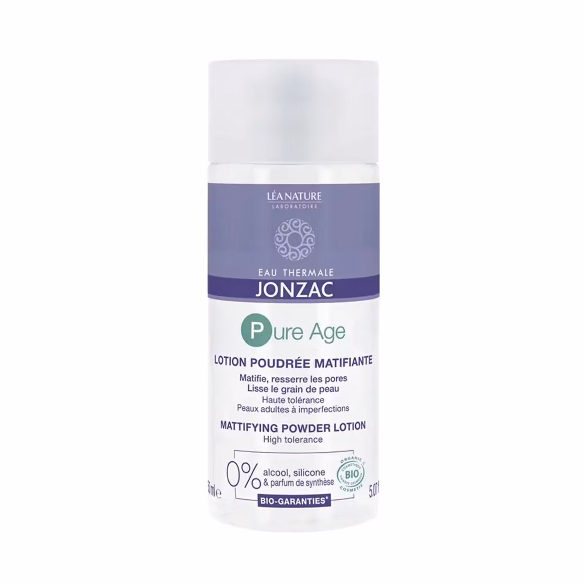 Locioni Matifikues Pure Age Me Pluhur nga Jonzac Bio është një locion matifikues që ndihmon në kontrollin e yndyrës së tepërt dhe reduktimin e shkëlqimit. Ky lotion është i pasuruar me përbërës natyralë që ndihmojnë në rafinimin e poreve, përmirësimin e strukturës së lëkurës dhe ofrimin e një përfundimi mat. Është ideal për lëkurën e yndyrshme dhe të përzier, duke ofruar kontroll të gjatë të yndyrës dhe duke ndihmuar në ruajtjen e një toni të pastër dhe të balancuar të lëkurës. Formula e lehtë përthithet shpejt, duke e bërë atë të përkryer për përdorim të përditshëm.