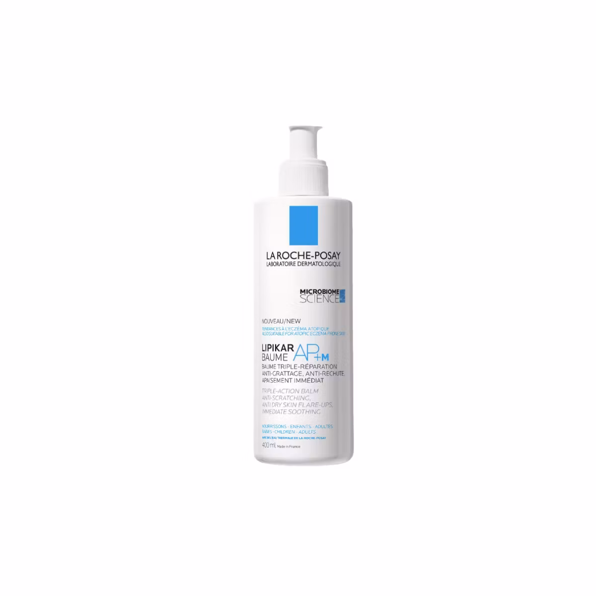La Roche-Posay Lipikar Baume AP+M është balsam ideal për lëkurën me ndjesi shqetësimi dhe kruajtjeje. Aqua Posae Filiformis është një probiotik që ndihmon në kufizimin e Staphylococcus aureus. Redukton bakteret dhe stimulon ruajtjen e mikrobiomës fiziologjike të lëkurës. Uji termal La Roche Posay ka veti antioksidante, prebiotike dhe redukton irritimin, duke qetësuar lëkurën. Microrésyl është një përbërës aktiv natyral i marrë nga rrënjët e Ophiopogon japonicus. Ka aftësinë të parandalojë përhapjen e baktereve në lëkurë. Niacinamidi ka veti anti-inflamatore dhe hidraton lëkurën. Gjalpi Shea ushqen dhe ndihmon në rigjenerimin dhe zbutjen e lëkurës duke i dhënë rehati. Është i përshtatshëm për lëkurë shumë të thatë dhe lëkurë që vuan nga dermatiti atopik. I përshtatshëm për të gjithë familjen, nga foshnjat tek të moshuarit.