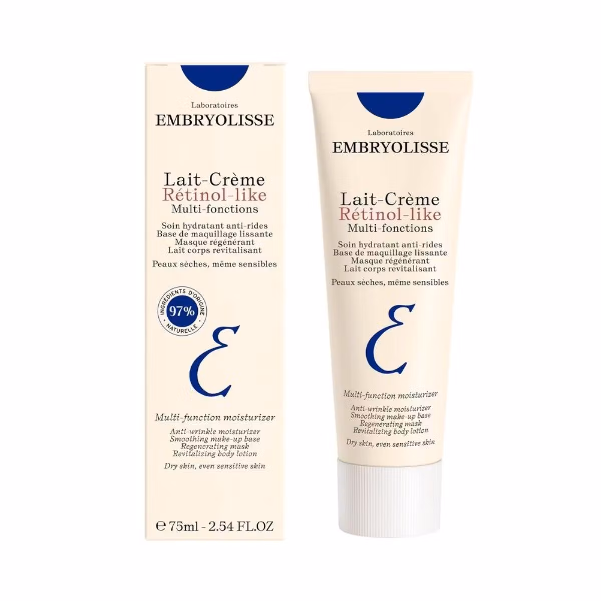 Embryolisse Lait-Crème Retinol-like Multi Functions është një krem hidratues dhe riparues me veprim të shumëfishtë, i krijuar për të ofruar përkujdesje intensive për lëkurën, duke imituar efektet e retinolit, pa shkaktuar irritim.