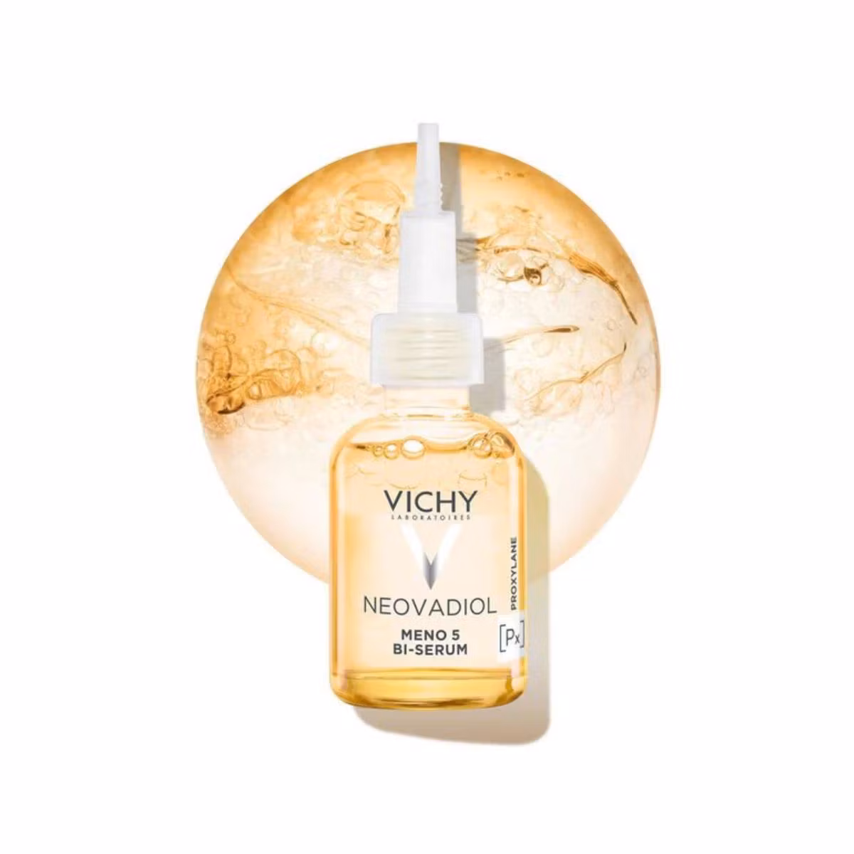 Neovadiol Meno 5 Serum fuqizohet nga sinergjia e përbërësve, përfshirë proksilanë, ekstrakt cassia, vitaminat B3-C-E, omega 6-9 dhe uji vullkanik i Vichy.
