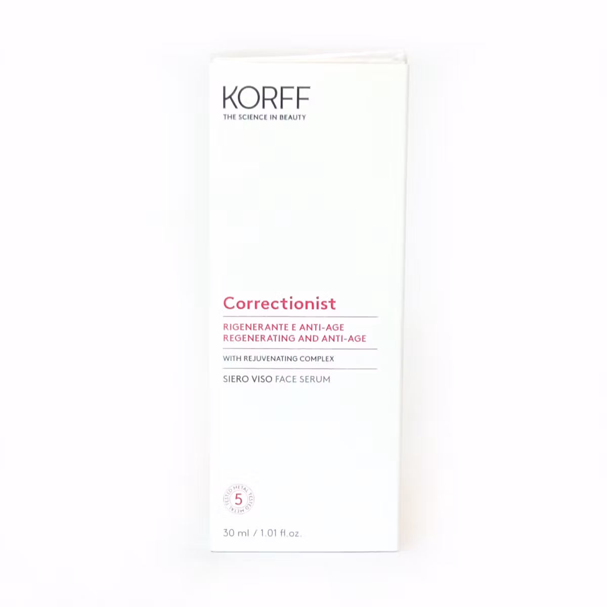 Serumi kundër rrudhave dhe rigjenerues për fytyrën Korff minimizon rrudhat, nxit elasticitetin e lëkurës, tonifikimin dhe shkëlqimin. Përmban kompleksin rigjallërues “Rejuvenating” dhe një përzierje të përbërësve aktivë, të cilët e mbajnë lëkurën të njëtrajtshme. Serumi ka teksturë prej krem xheli, është i lehtë dhe përthithet shpejt si dhe është i përshtatshëm për të gjitha llojet e lëkurës.