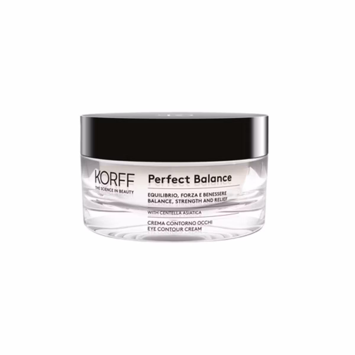 Korff Perfect Balance Eye Contur është krem anti-rrudhë për konturin e syve. Forcon lëkurën duke ndihmuar ne reduktimin e rrudhave. Hidraton dhe ushqen në thellësi zonën e brishtë të konturit të syrit. Formula e saj me Centella asiatica, vaj Camelia dhe kafeinë i rikthen lëkurës vitalitetin e duhur. Lëkura fiton elasticitet dhe rrudhat zhduken. Kafeina redukton rrathët e zinj poshte syve.Ndihmon në eleminimin e rrudhave të mimikës në zonën rreth syve. Është i përshtatshëm për të gjithë llojet e lëkurave.