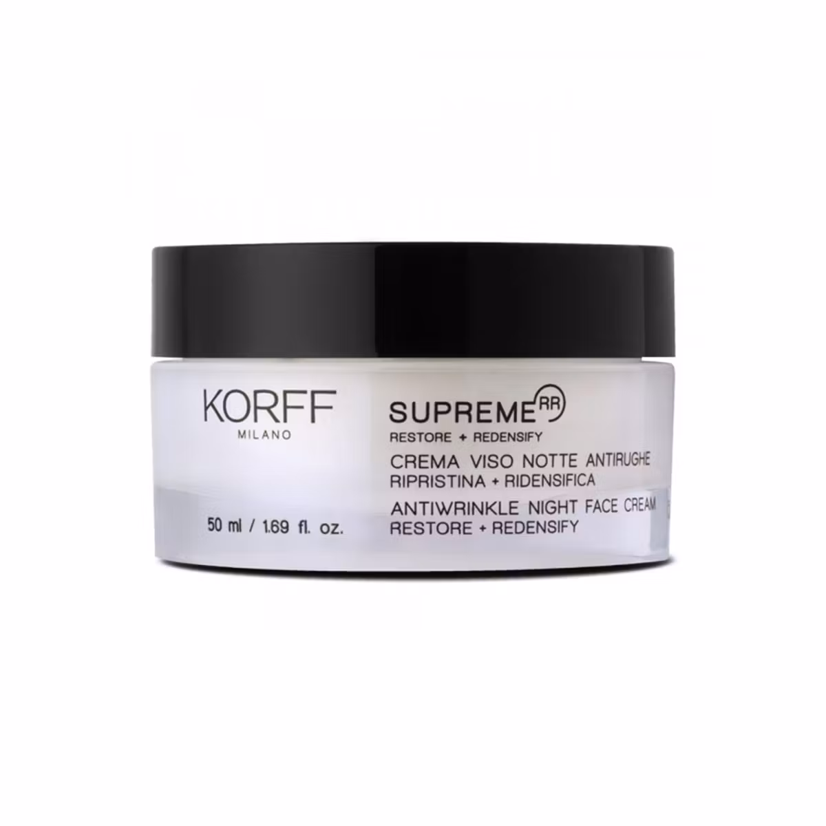 Kremi i natës kundër rrudhave Korff Supreme RR ka testurë të pasur, të butë dhe që përthithet, e cila hidraton, redukton rrudhat, tonifikon lëkurën dhe falë pranisë së filtrave mbrojtës ndaj diellit parandalon fotoplakjen. Kremi synon trajtimin e ndryshimeve të lëkurës gjatë menopauzës: rënia e tonifikimit dhe e elasticitetit, reduktimi i zëvendësimit të qelizave të vdekura me të reja dhe i shkëlqimit si dhe tendenca që ka fytyra për tu dehidratuar.