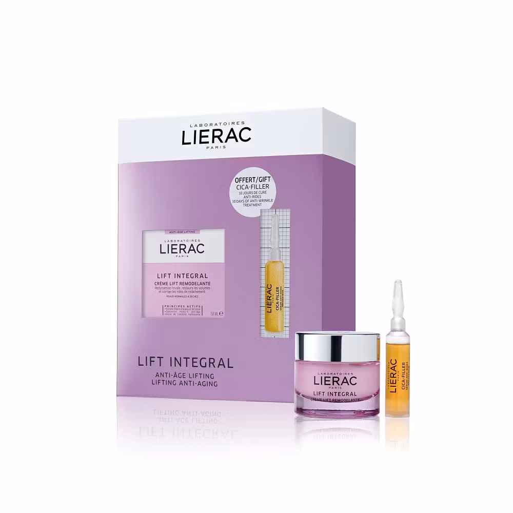 Lierac Bipack Lift Integral Anti Aging Cream+Cica Filler është një set i cili përmban kremin hidratues me efekt lifting kundër rrudhave si dhe serumin rigjenerues.