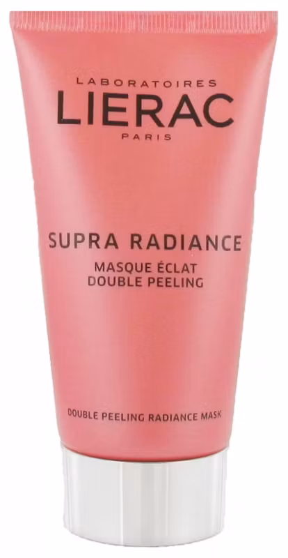 Maska Peeling Lierac Supra Radiance Double rigjeneron dhe tonifikon lëkurën. Përmban koncetrat Hyalu-3 që ka veprim kundër plakjes, zbutës dhe plotësues dhe mikro-kristale vullkanike me veprim kimik eksfoliant. Lufton plakjen nga toksinat dhe ka një teksturë aktive që jep një freski të shpejtë që zgjat për aq kohë sa mbahet maska. E përshtatshme për të gjitha llojet e lëkurës.