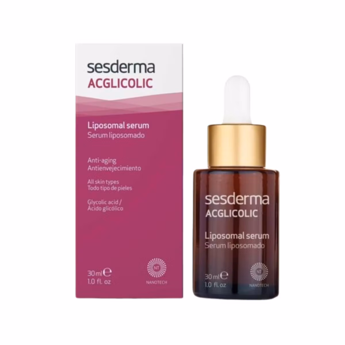 Sesderma Acglicolic Liposomal Serum është serum që ka rezultate të mahnitshme për të rinovuar lëkurën. Acidi glikolik është një nga përbërësit më efektivë në luftën kundër plakjes. Serumi vepron duke eleminuar rrudhat dhe parandalon daljen e rrudhave të reja. Hidraton dhe krijon një efekt qetësues, i cili nxit rinovimin e qelizave duke reduktuar rrudhat e thella. Ka në formulë përbërës aktivë antioksidues dhe rinovues. Përdoret të gjitha llojet e lëkurës në fillimin e shenjave të para të plakjes. Nëpërmjet vetive të tij të fuqishme hidratuese dhe efekteve rinovuese do të vini re një lëkurë të re që në aplikimet e para. Poret zvogëlohet dhe lëkura fiton vitalitetin e duhur.