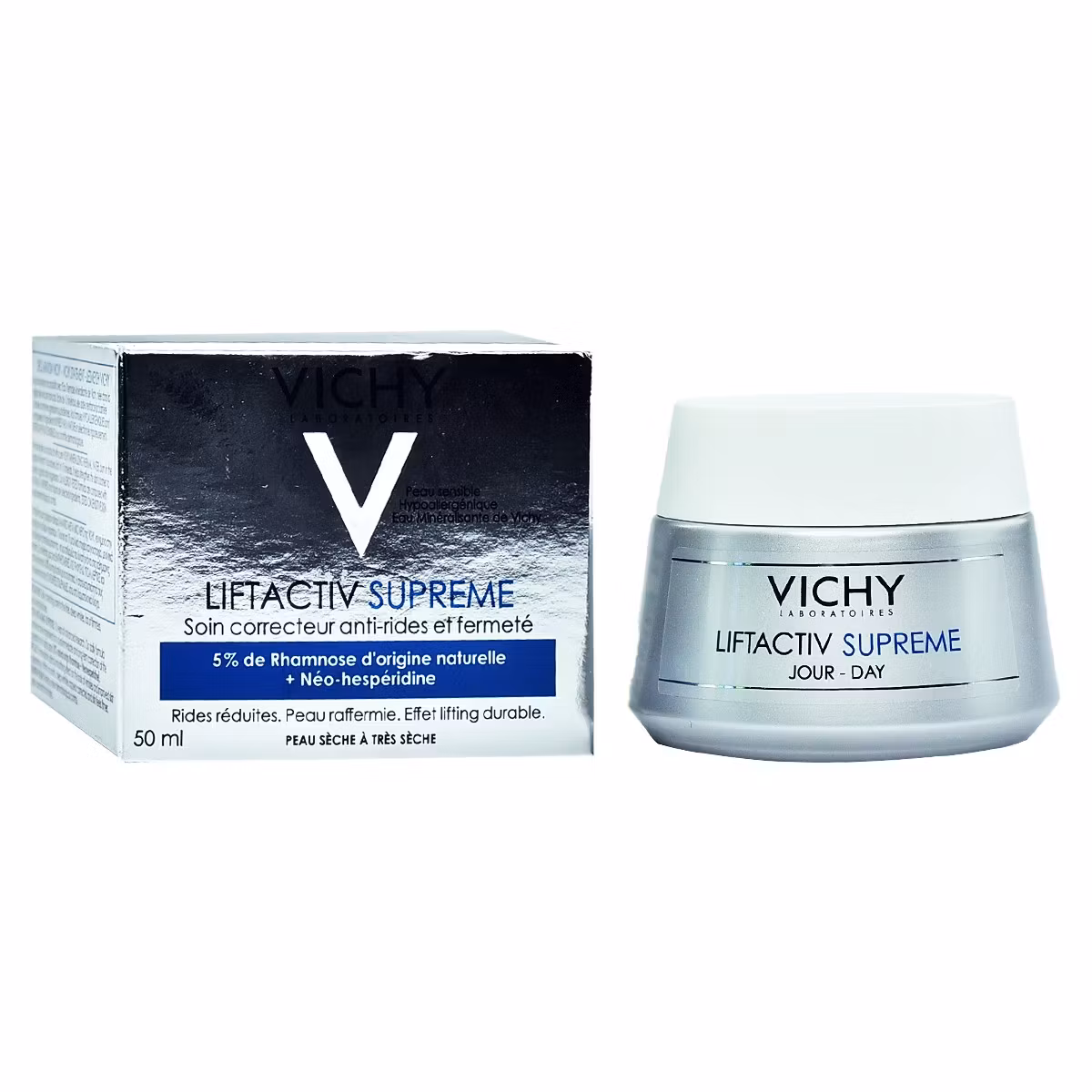 Vichy Liftactiv është një krem hidratues kundër rrudhave, me efekt lifting që korrigjon rrudhat dhe ushqen në thellësi lëkurën. Liftactiv Supreme ka një veprim zbutës të menjëhershë. Ka teksurë të lehtë dhe përthithet shpejt dhe në mënyrë të njëtrajtshme nga lëkura. Kombinimi i Kafeinës me Rhamnoze, një sheqer natyral, ushqen dhe rigjeneron lekuren. Uji termal Vichy forcon mbrojtjen natyrale të lëkurës. Jep një ndjesi freskie dhe komforti në lëkurë.