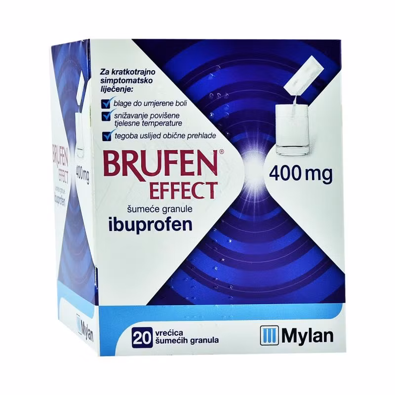Brufen 400 mg në trajtë bustine përmban si lëndë vepruese Ibuprofen (400mg) që i përket grupit të barnave anti-inflamatorë josteroidë. Lehtëson dhimbjen dhe inflamacionin në gjendjet si osteoartriti, artriti rheumatoid, spondiliti ankilozant, kyçe të ënjtura, shpatulla të ngrira, dhimbje të pjesës së poshtme të kurrizit, tërheqjet muskulare dhe ndrydhjet. Trajton gjithashtu gjendjet e shoqëruara me dhimbje: si dhimbja e dhëmbit, menstruale, dhimbje koke si dhe për uljen e temperaturës. Rekomandohet të përdoret për të rritur dhe adoleshentët mbi 12 vjeç.