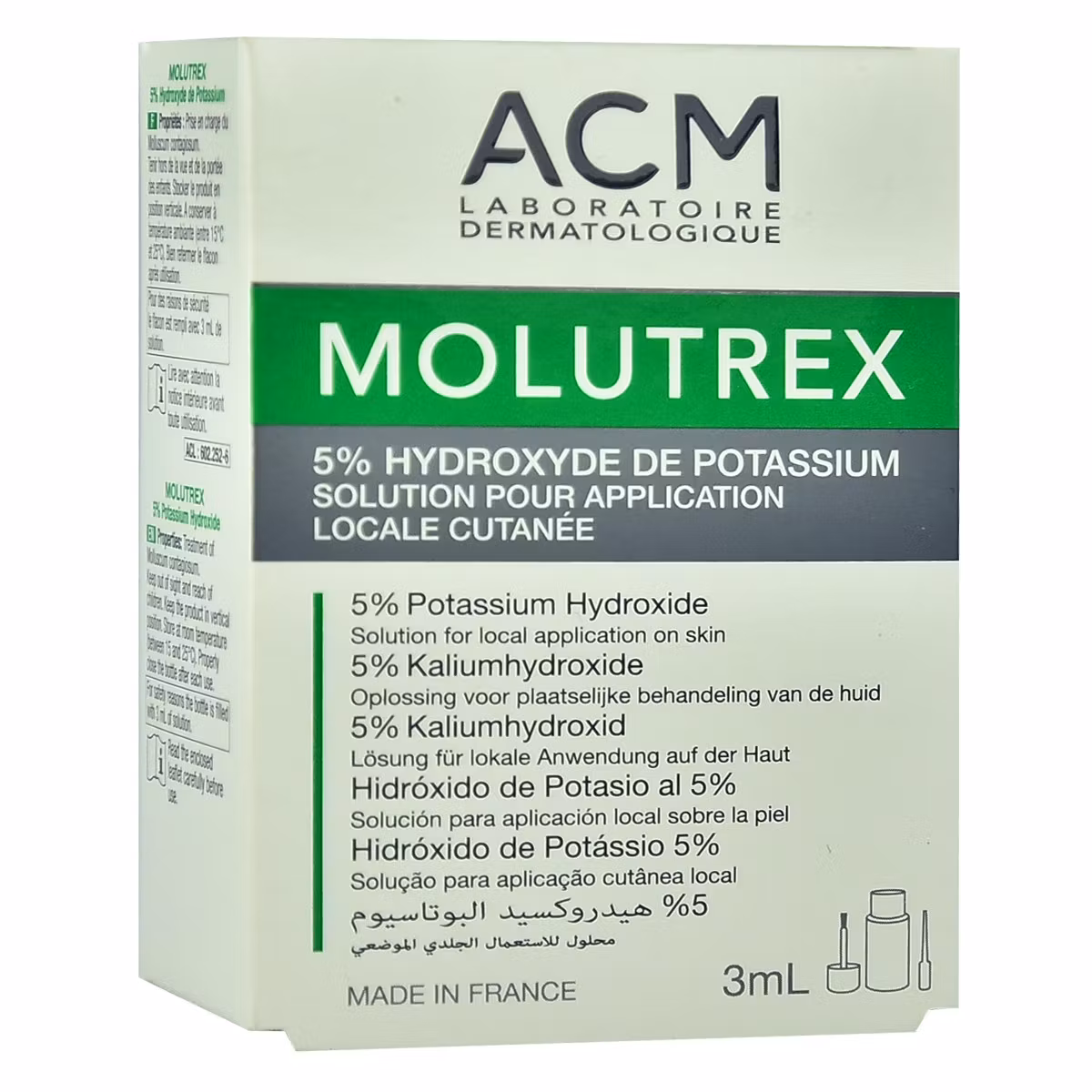 Molutrex është një tretësirë për aplikim lokal në lëkurë me hidroksid kaliumi. Rekomandohet për trajtimin e Molluscum contagiosum, një infeksion viral i karakterizuar nga shenja që mund të shfaqen kudo në trup. Mund të përdoret në fytyrë dhe trup (përveç rreth zonës së syve dhe mukozës) te të rriturit dhe fëmijët mbi moshën 2 vjeç.