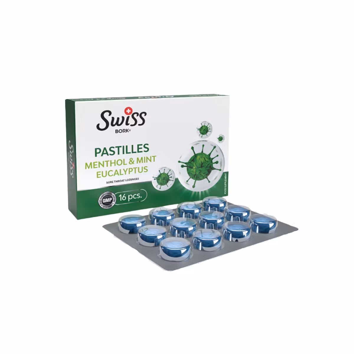 Swis Bork Pastille Mentol janë suplemente ushqimore që përmirësojnë mirëqënien e fytit. Mund të përdoren në çdo stinë dhe ndihmojnë në trajtimin e dhimbjes së fytit të shoqëruar me ndjesi djegieje dhe irritim. Mentoli lë në gojë një ndjesi freskie. Eukalipti vepron si antibakterial. Përtypen lehtësisht.