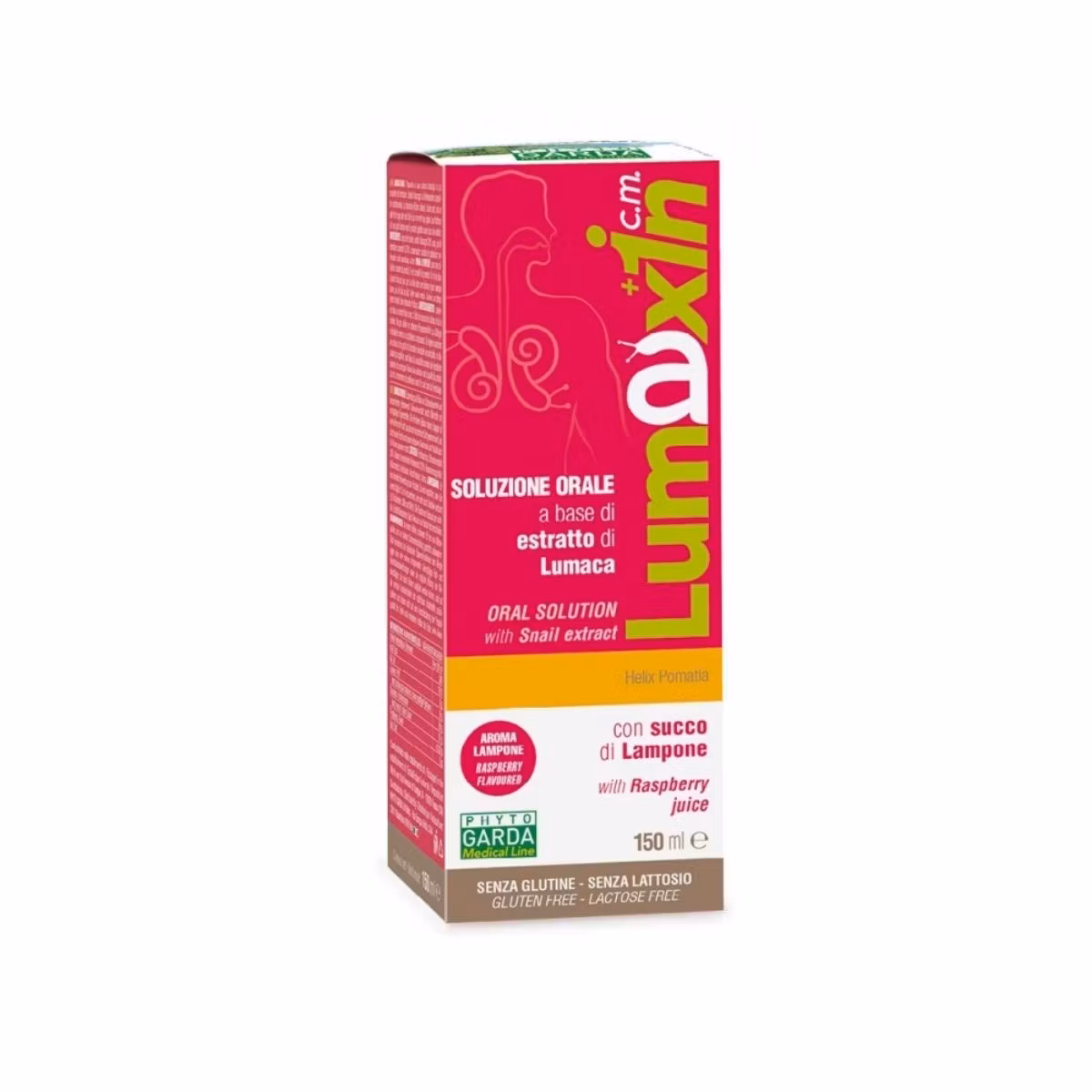 Lumaxin shurup për të rritur dhë fëmijë që përmban Altea, Drosera, Ivy dhe ekstrakt të mukozës së Kërmilli. Qetëson kollën e thatë, eliminon sekrecionet dhe rigjeneron mukozën. Përdoret si për kollë të thatë ashtu dhe për kollë me sekrecione. Lumaxin mbron mukozën, qetëson irritimin, hidraton dhe nxit eliminimin e mukusit duke lehtësuar shqetësimin nga kola. Pa gluten, pa laktozë. Me shije frutash pyll.