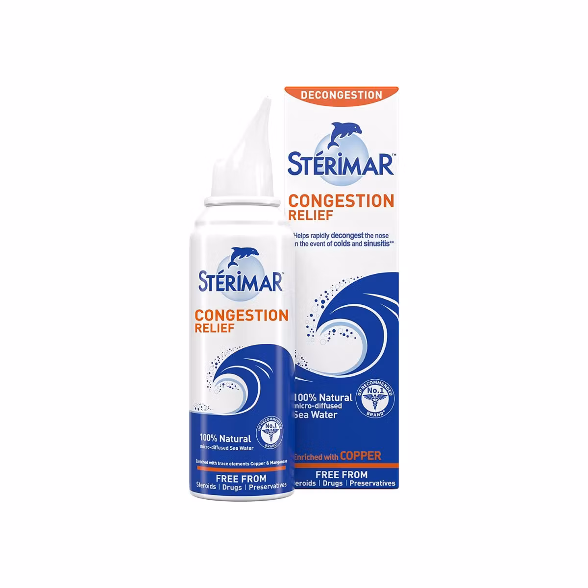 Sterimar Congestion Relief ndihmon në zbutjen e shpejtë të sekrecioneve të hundës në rast të ftohjes dhe sinusitit. Ju ndihmon që të merrni frymë lëhtësisht në mënyrë natyrale. Përmban ujë deti i pasur me kripëra minerale të njohura për vetitë e tyre terapeutike. Kriperat e Bakrit në përmbajtje ndihmojë në nxjerrjen e sekrecioneve. Është e përshtatshmë për përdorim për fëmijët mbi 3 vjeç dhe të rriturit, duke përfshirë gratë shtatzëna dhe nënat që ushqejnë fëmijët me gji.