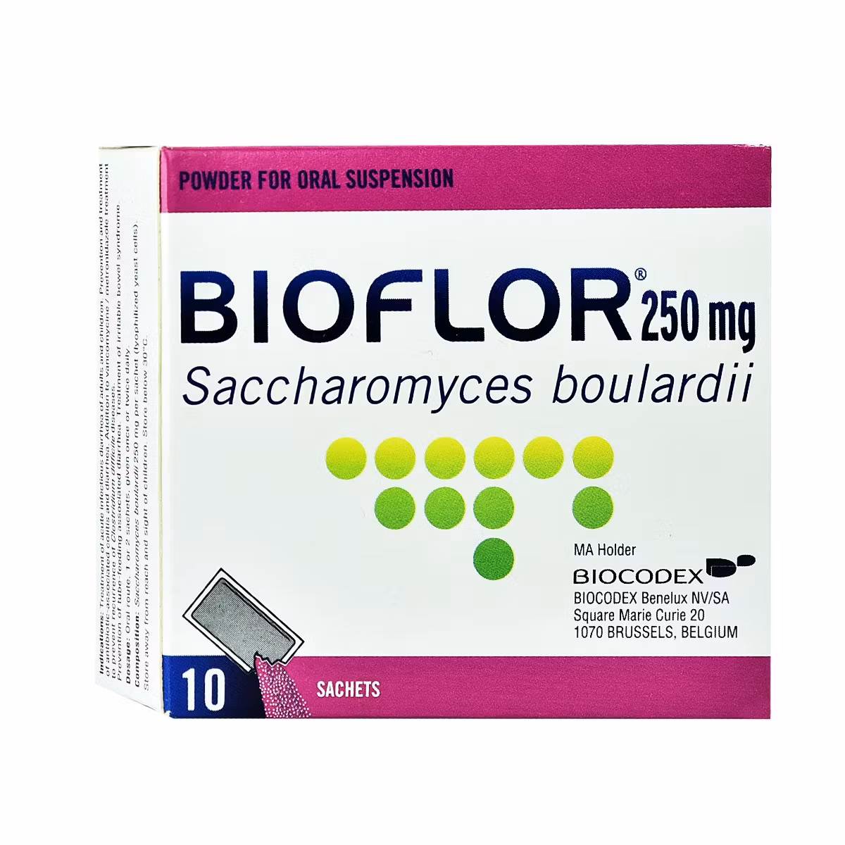 Bioflor Sacharomyces boulardii është një suplement në formë pluhuri me probiotikë i përshtatshëm për trajtimin e sëmundjeve të zorrëve te fëmijët dhe të rriturit. Trajton diarrenë akute, diarrenë dhe inflamacionin e shkaktuar nga trajtimi me antibiotikë. Ky produkt zëvendëson florën e zorrëve dhe përdoret si ndihmës i trajtimit me antibiotik të sëmundjeve të zorrëve.