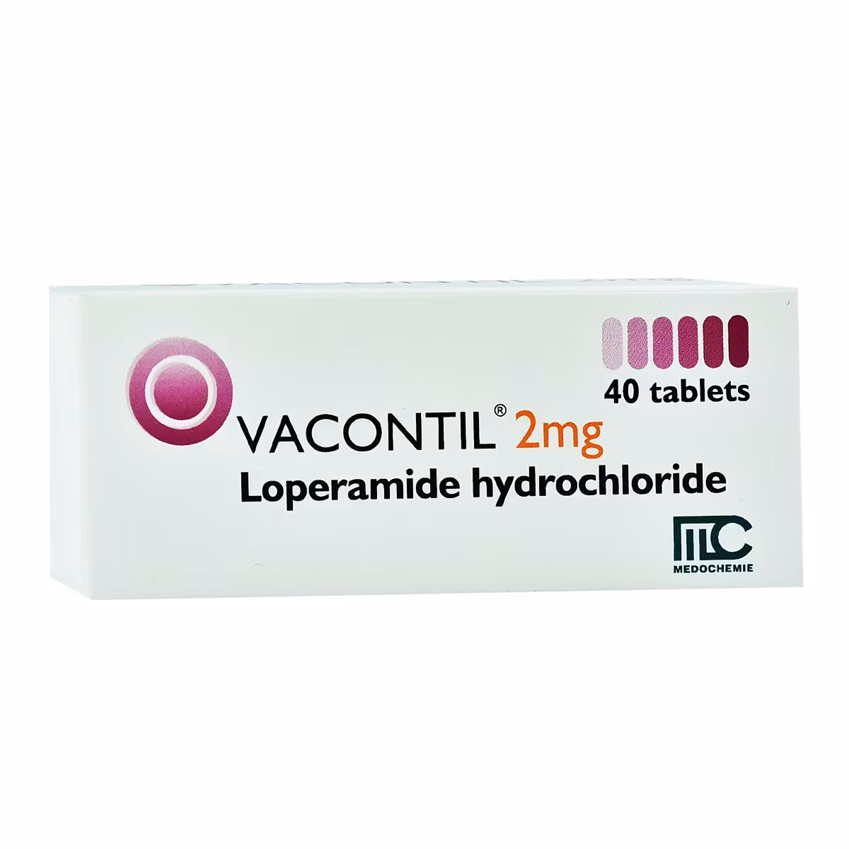 Vacontil përdoret për të trajtuar diarrenë e papritur duke përfshirë dhe diarrenë e udhëtarit. Ngadalëson lëvizjen e zorrëve dhe i bën feçet më pak të ujshme. Trajton simptomat e diarresë jo shkakun (infeksionin). Përdoret për të rritur dhe fëmijë mbi 8 vjeç.