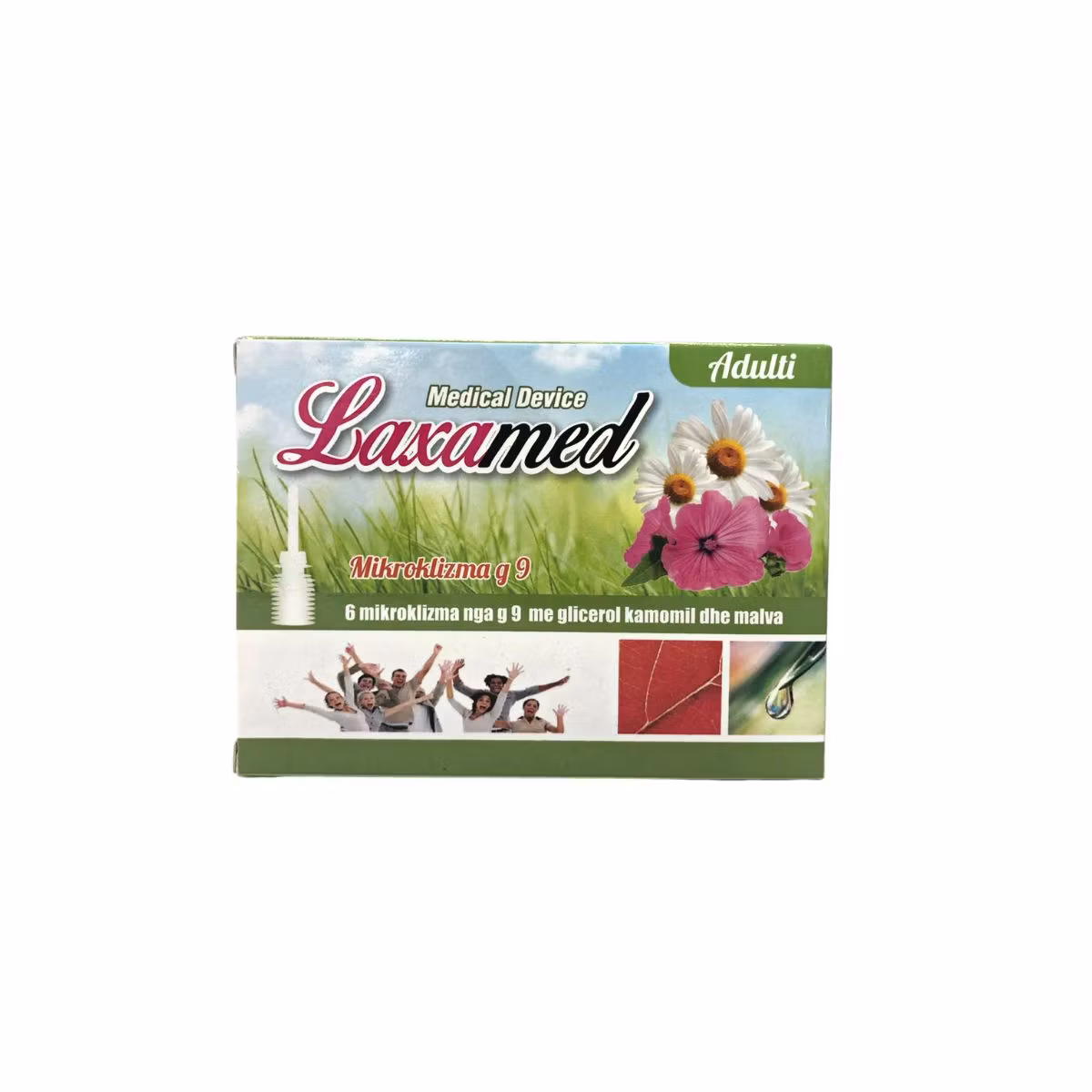 Mikroklizma Laxamed për të rritur është një trajtim kundër kapsllëkut me 9g ekstrakte Kamomili, Lule Mëllage (Malva). Ka një veprim lubrifikues në murin e rektumit dhe nxit lëvizjet e zorrëve, qetëson mukozën, lubrifikon masën fekale duke ndihmuar në zbrazjen e zorrëve pa e irrituar atë. Kutia përmban 6 mikroklizma.