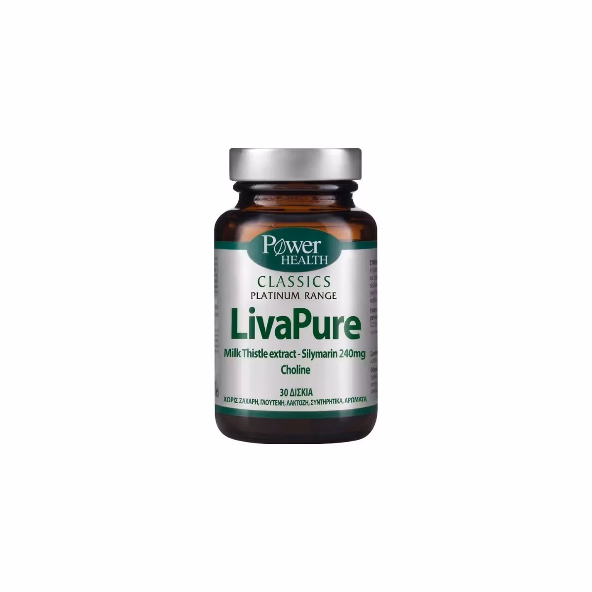 Suplement ushqimor që siguron fuksionimin normal të mëlçisë. Power Health Classics Platinum Liva përmban Milk Thistle, Kolinë, Kalcium, Vitaminë B6, B12 dhe Acid Folik. Ideale për njerëzit me probleme me mëlçinë, personat me një dietë ushqimore të varfër, atletët dhe personat mbi 50 vjeç.