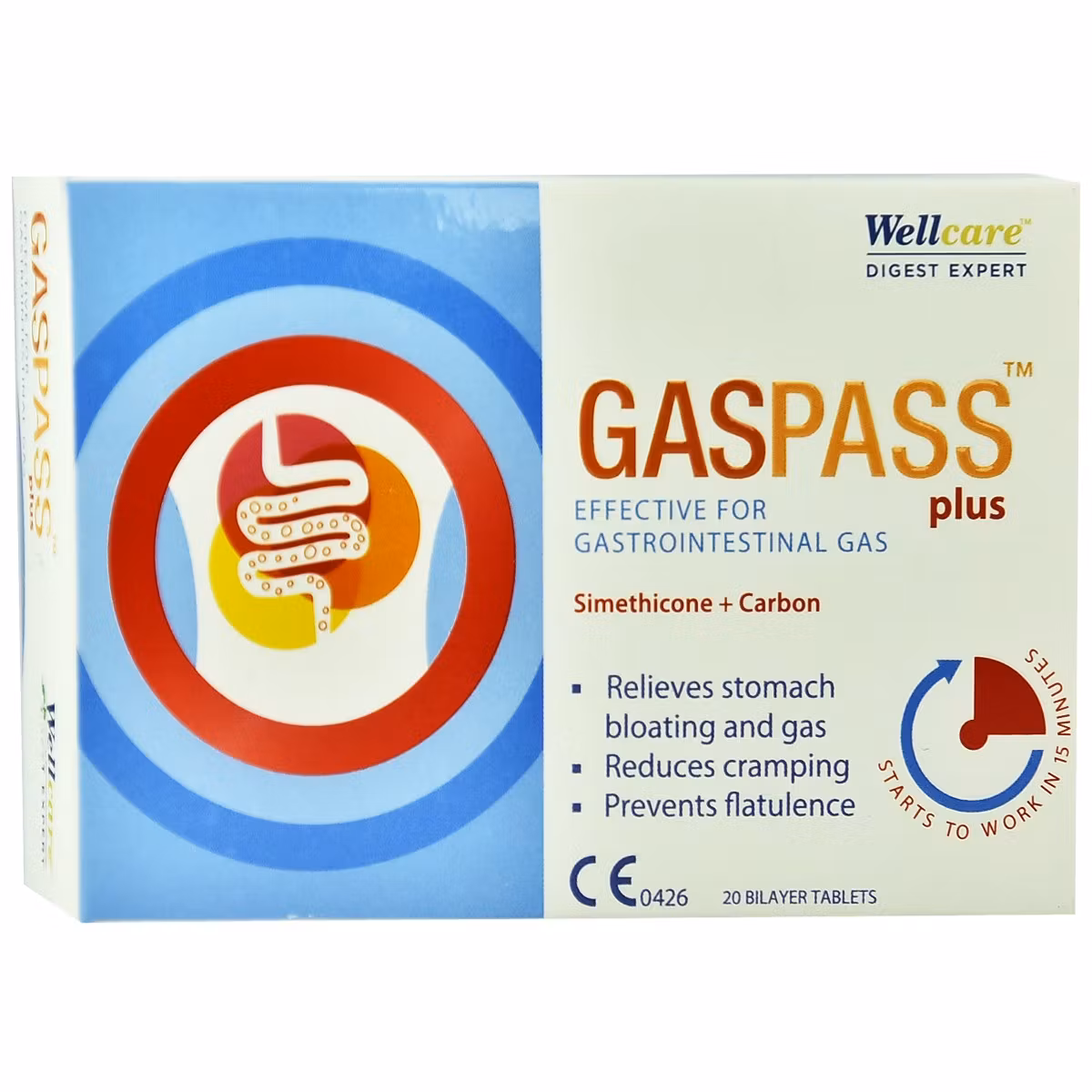 Gaspass është bar me Simetikon dhe Karbon që përdoret për trajtimin simptomatik të shqetësimeve gastro-intestinale. Lehtëson fryrjen e barkut të shkaktuar nga akumulimi i gazrave. Fillon të veprojë brenda 15 minutash dhe pakëson krampet dhe dhimbjet.