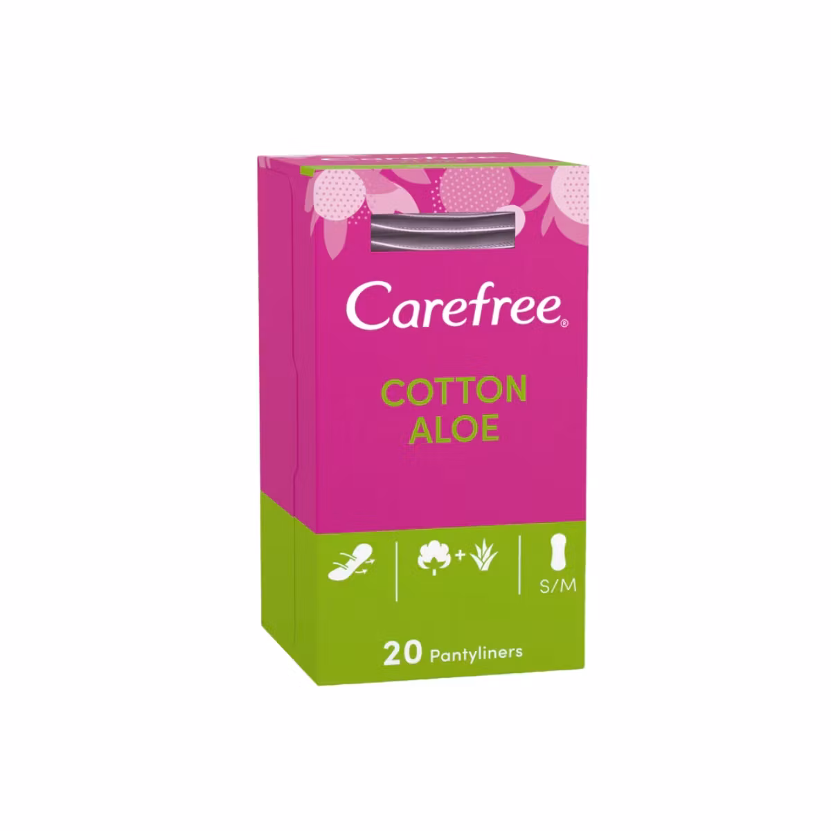 Carefree Panty Liners Aloe janë peceta ditore të holla dhe shumë absorbuese. Janë të përbera nga pambuku që i jep lëkurës rehatin e duhur. Lejojnë qarkllimin e ajrit që ju bën të ndiheni të freskët gjatë gjithë ditës. Kanë në përmbajtjen e tyre Aloe Vera që u jep një aromë të lehtë dhe ndihmon për të neutralizuar çdo erë.