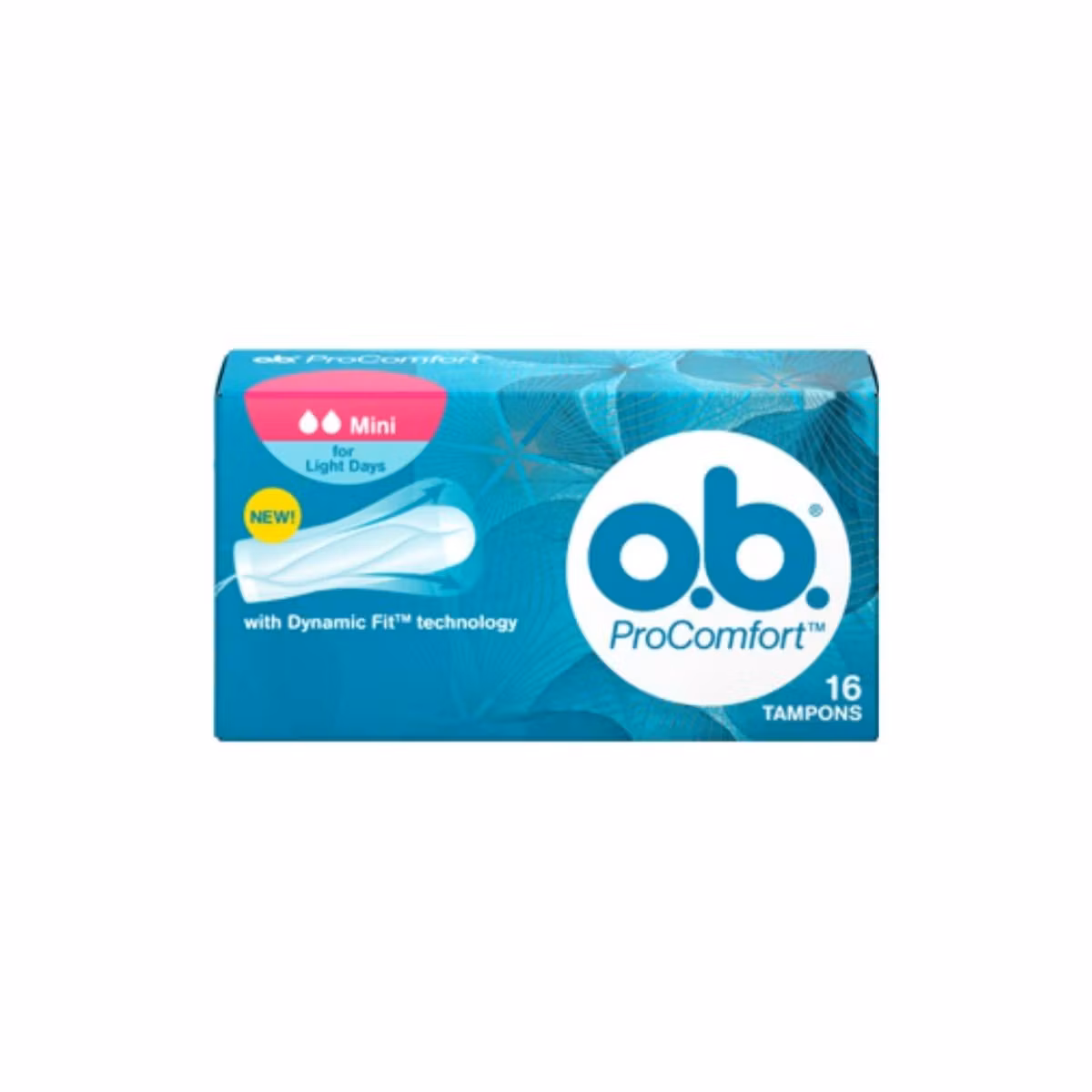 OB Procomfort Mini Dynamic është tampon që ofron rehati maksimale dhe mbrojtje të besueshme. Teknologjia Dynamic Fit është me një strukturë tre-dimensionale siguron përshtatjen e përsosur me formën e trupit dhe kontribuon në thithjen dhe transferimin efikas të lëngut në pjesën e sipërme të tamponit. Është i përshtatshëm për ditë me rrjedhje të lehtë.