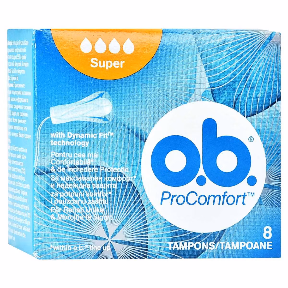 Tamponat o.b. Procomfort Super sigurojnë mbrojtje gjatë ciklit menstrual tek femrat dhe rehati. Teknologjia Dynamic Fit përshtatet në trupin tuaj dhe ndihmon në mbajtjen e rrjedhjeve, falë kanaleve të përmbyllura. Tamponi ka një mbështjellje Silk Touch, çka e bën më të lehtë aplikimin.
