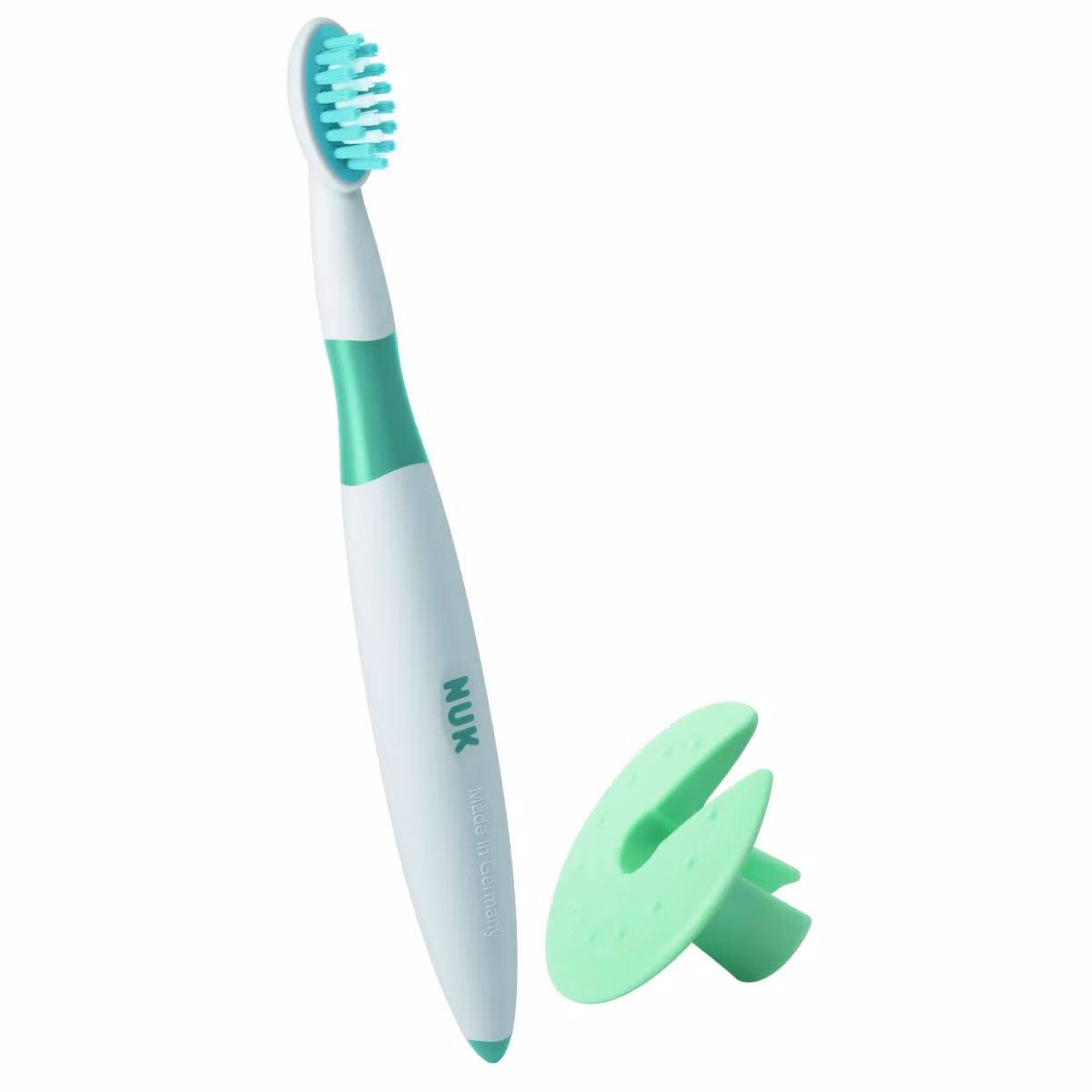 Seti për kujdesin e dhëmbeve NUK përmban furçën e dhëmbëve si dhe një unazë për mishrat e dhëmbëve. Eshtë i përshtatshëm për higjienën ditore të fëmijës tuaj nga mosha 12 muaj e në vazhdim. Fijet e butat ë ndërtuara prej një materiali cilësor pastrojnë pa irrituar gojën.