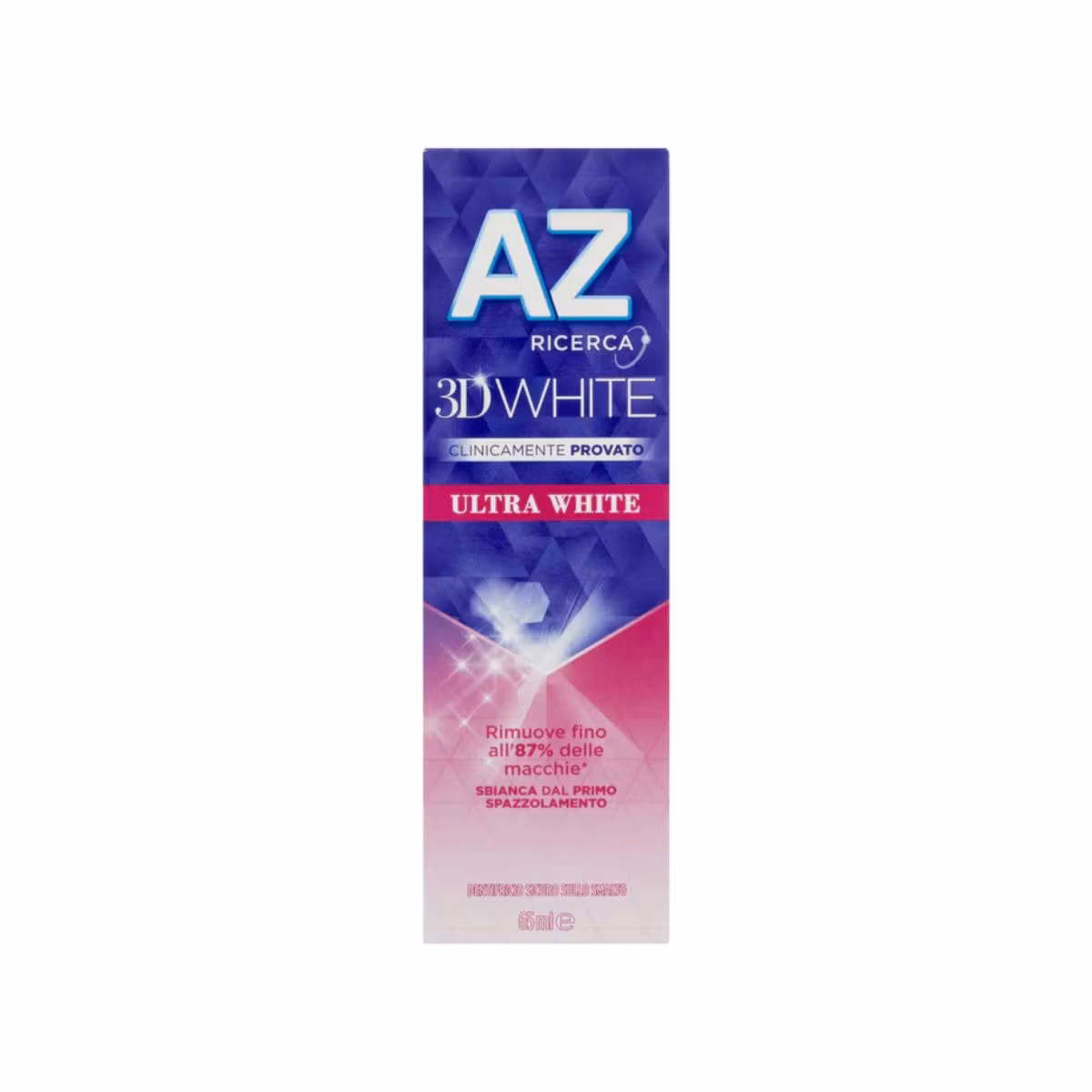 Pasta e dhëmbëve AZ 3D Ultra White ofron zbardhje të avancuar për një buzëqeshje më të ndritshme. Formula e saj aktive heq njollat sipërfaqësore dhe parandalon zverdhjen e mëtejshme, duke i dhënë dhëmbëve tuaj një shkëlqim të gjatë. Gjithashtu forcon smaltin dhe mbron kundër kaviteteve, duke e bërë atë ideal për përdorim të përditshëm.